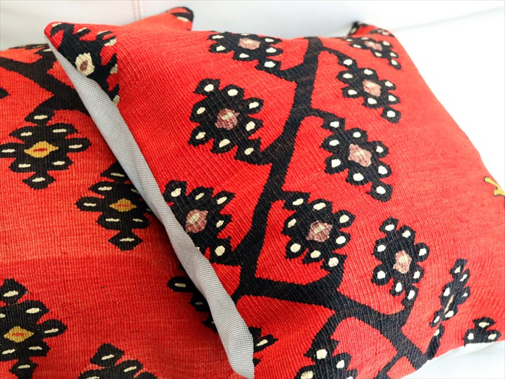 トルコのヨーロッパ大陸側、シャルキョイ地方の細かな織りのアンティークキリムのクッションカバー。この地域の織りの特徴で、細い糸で細かく織られています。薄手でしなやかな織り地です。あまり使われ様子がなくきれいな状態です。