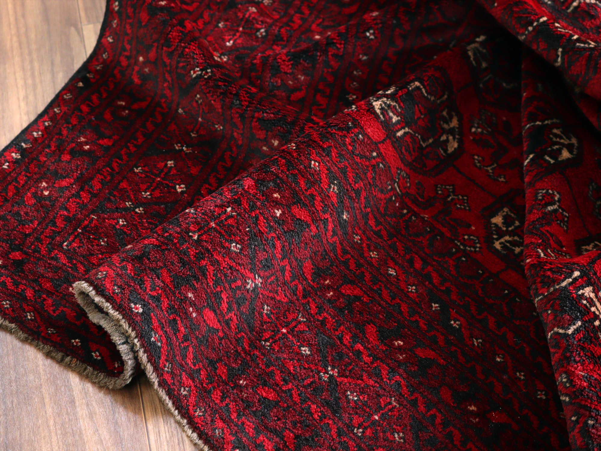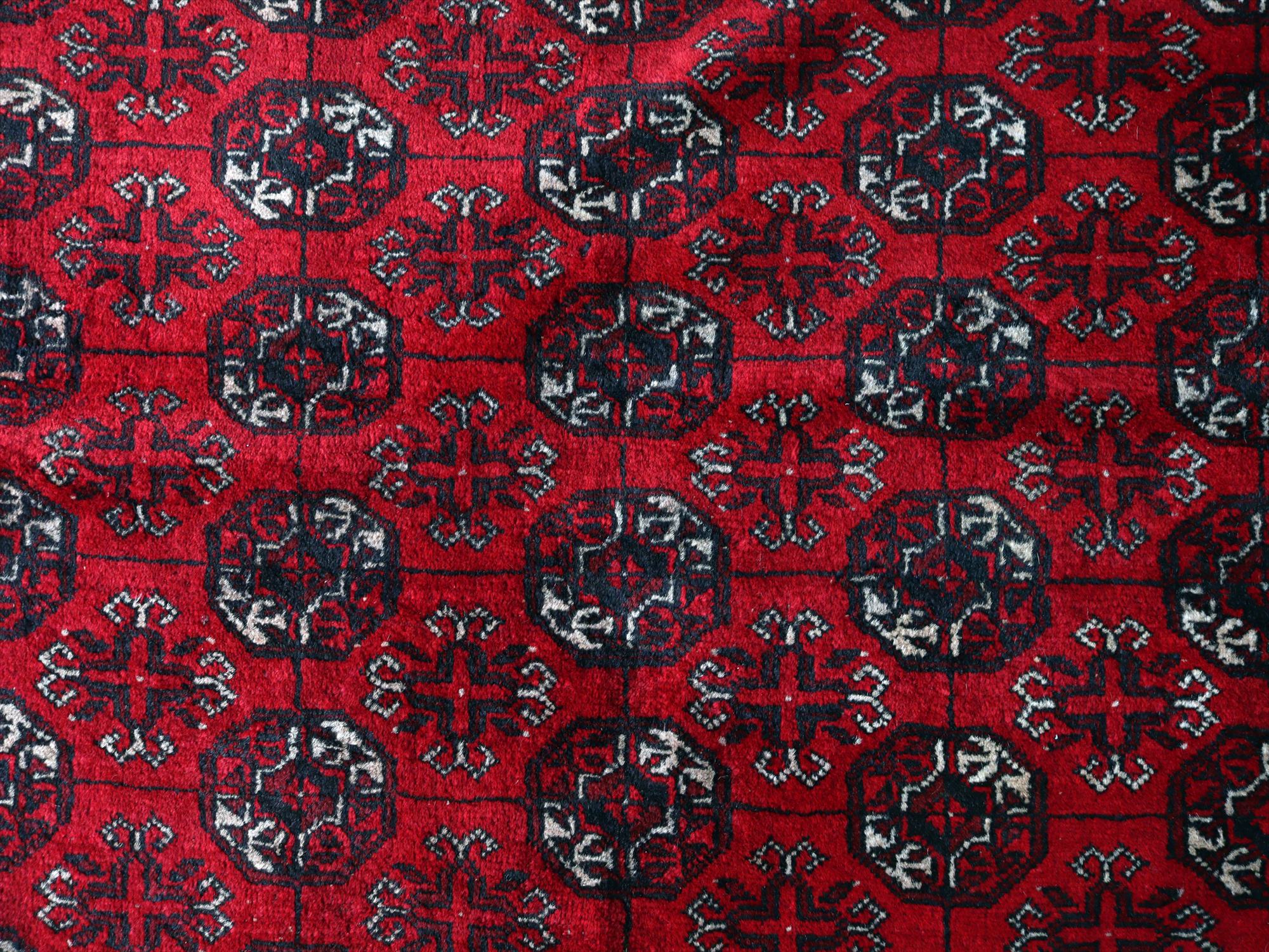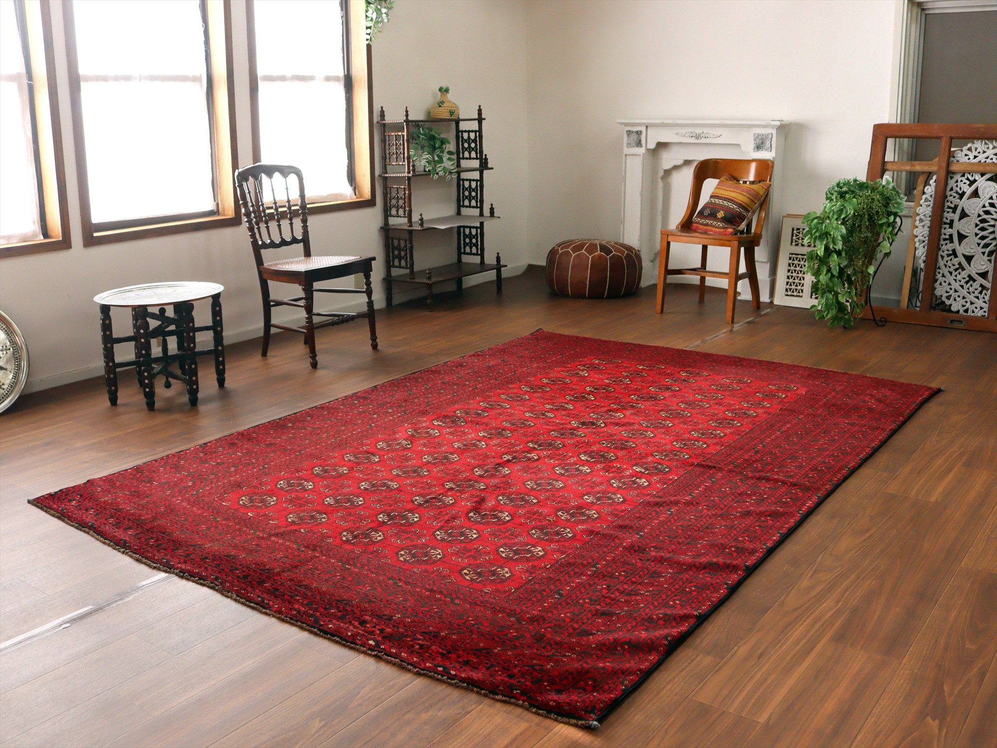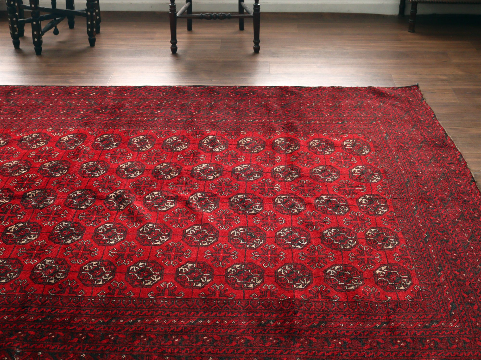 クンドゥズ アフガン絨毯266×185cm 連なる幾何学模様 レッド