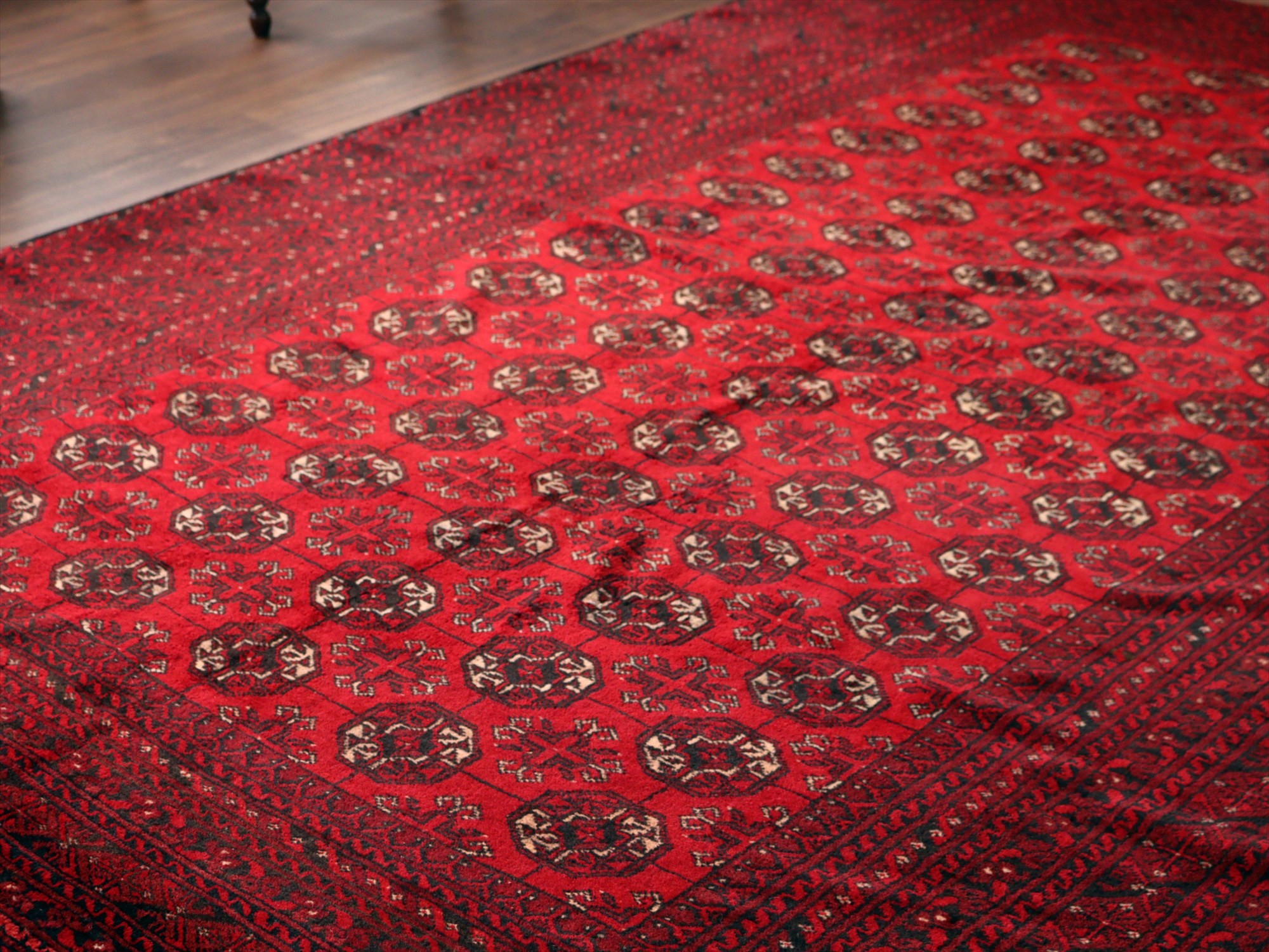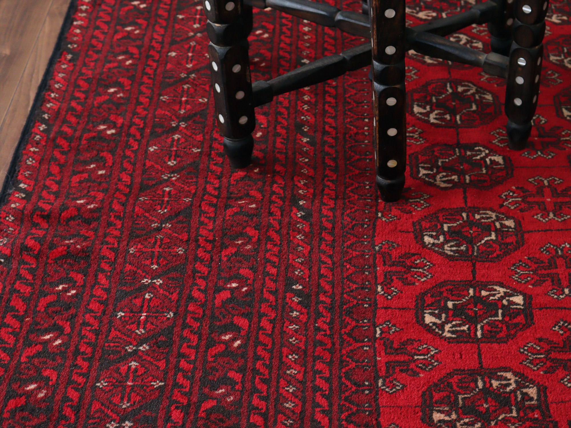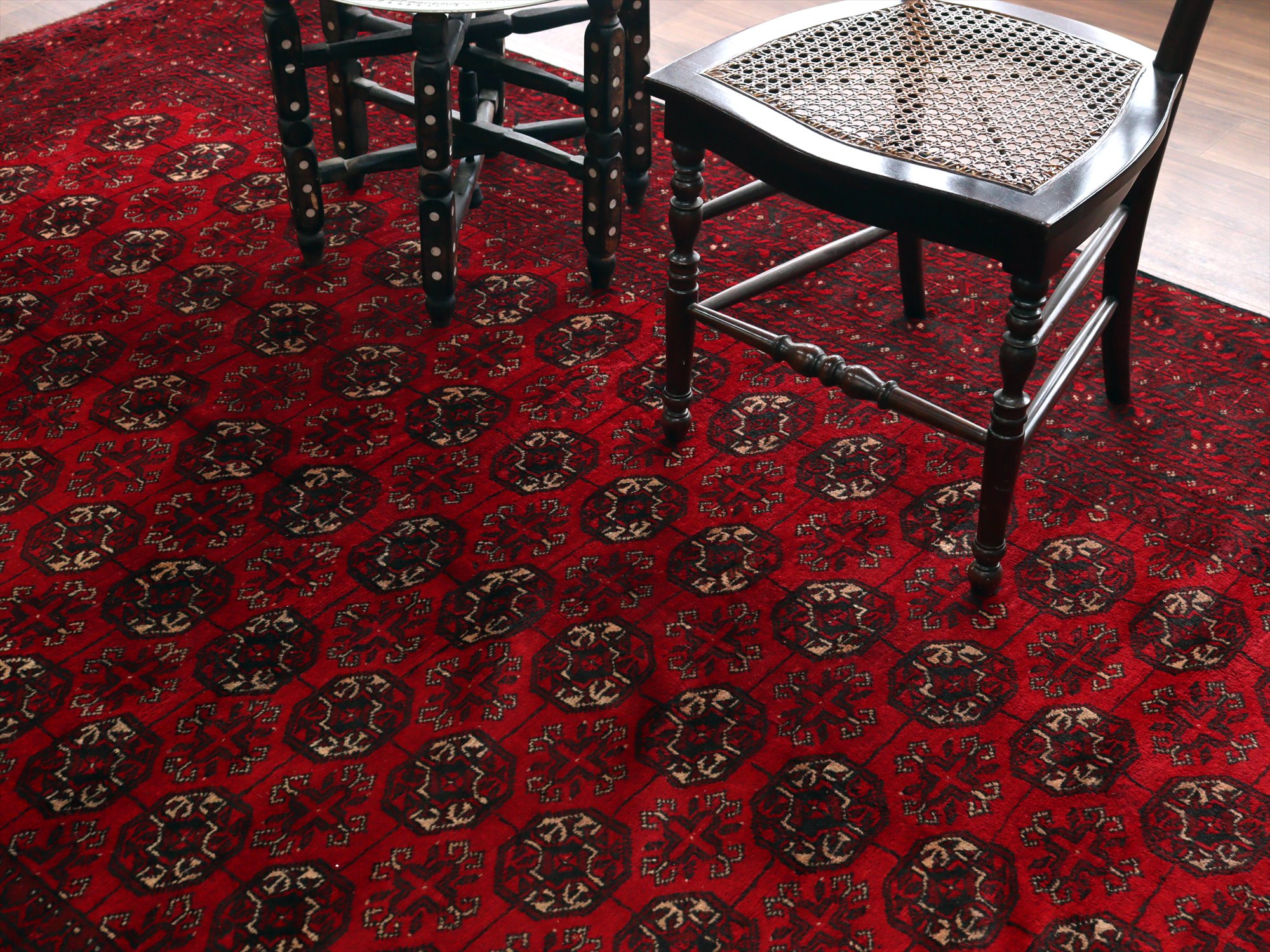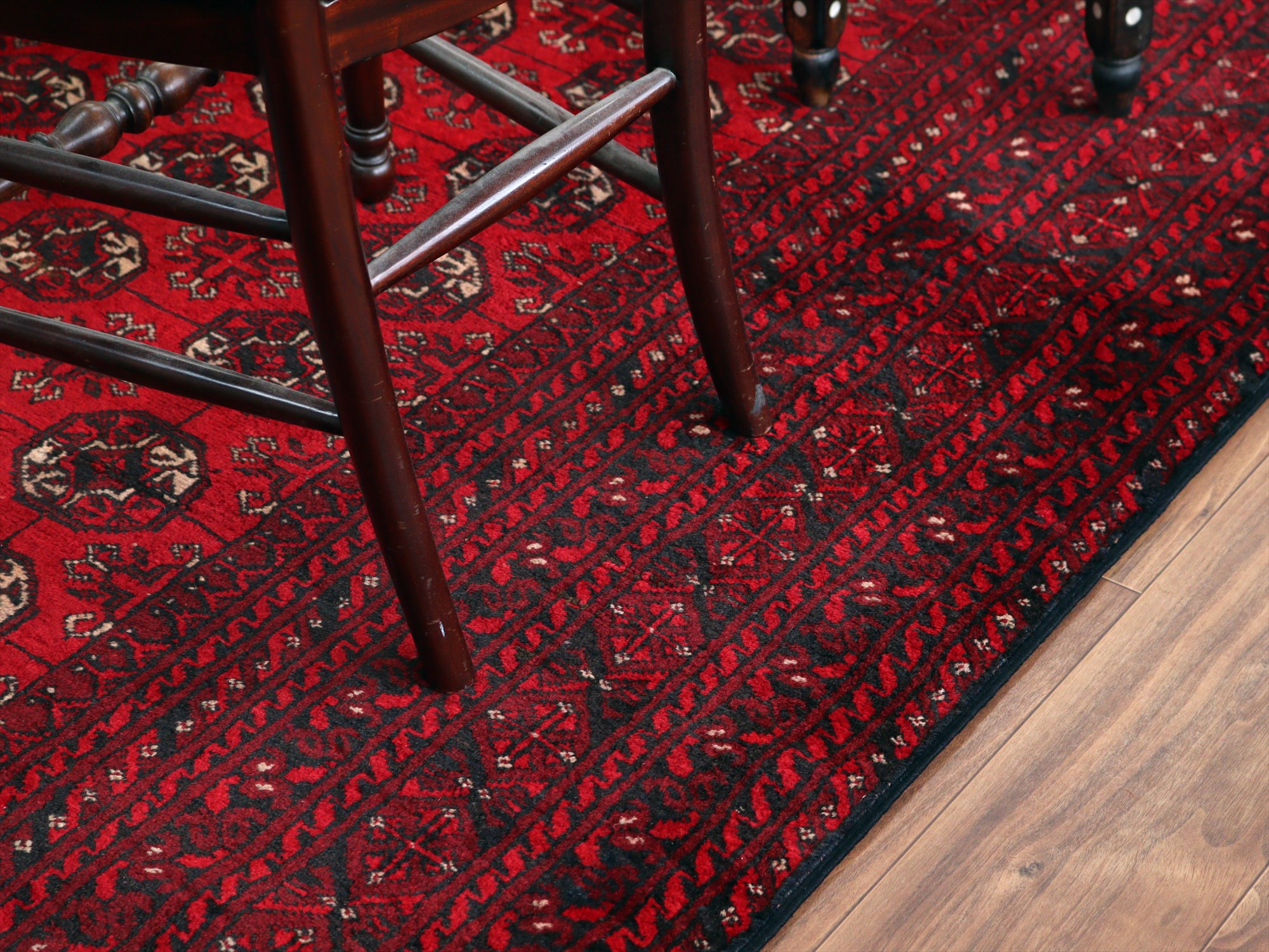 クンドゥズ アフガン絨毯266×185cm 連なる幾何学模様 レッド