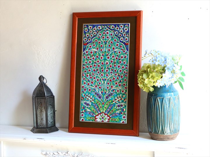 Key:タイル トルコ 陶器 イズニック キュタフヤ 手書き ハンドメイド パネル 額 インテリア 壁 ディスプレイ Iznik Tile Turkish Hand paint Handmade Ottoman Blue Mosque Kutahya