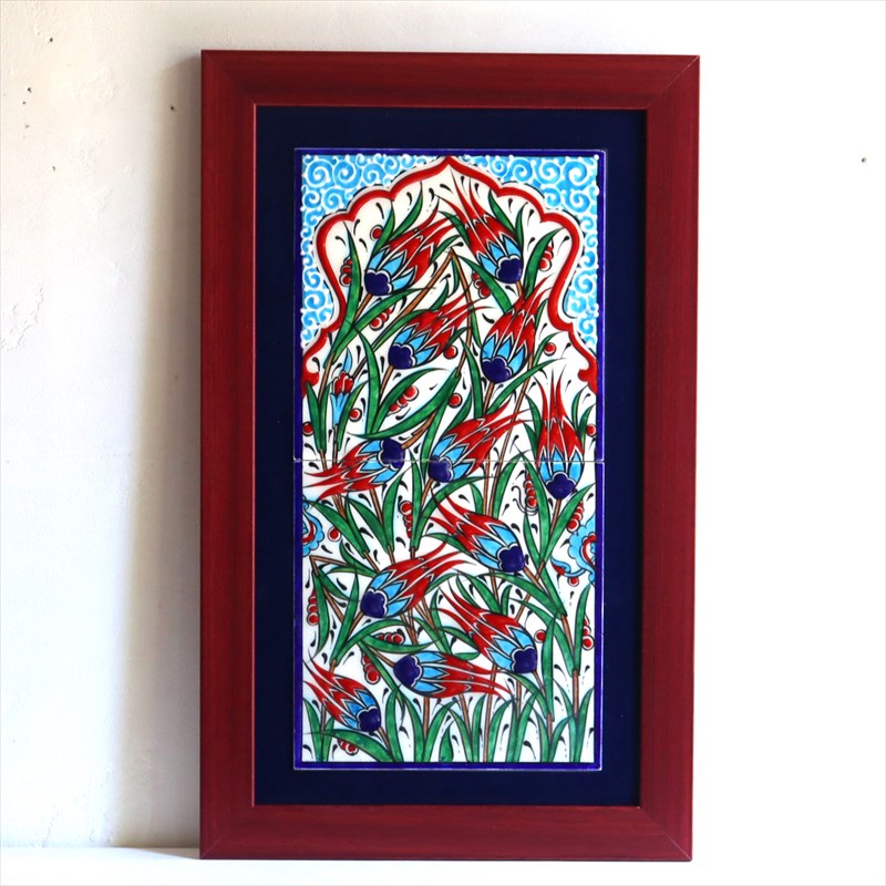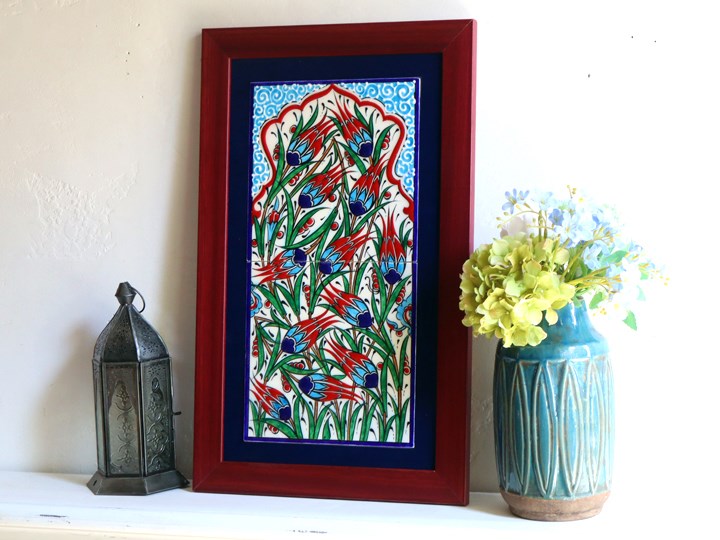 Key:タイル トルコ 陶器 イズニック キュタフヤ 手書き ハンドメイド パネル 額 インテリア 壁 ディスプレイ Iznik Tile Turkish Hand paint Handmade Ottoman Blue Mosque Kutahya