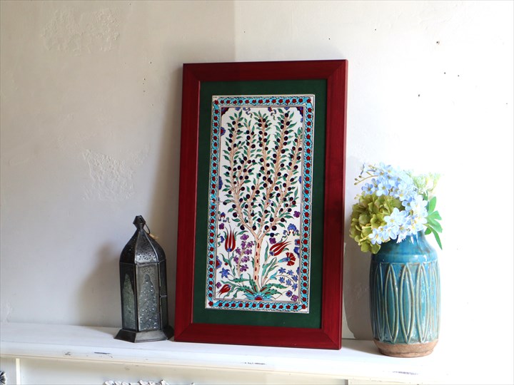 Key:タイル トルコ 陶器 イズニック キュタフヤ 手書き ハンドメイド パネル 額 インテリア 壁 ディスプレイ Iznik Tile Turkish Hand paint Handmade Ottoman Blue Mosque Kutahya
