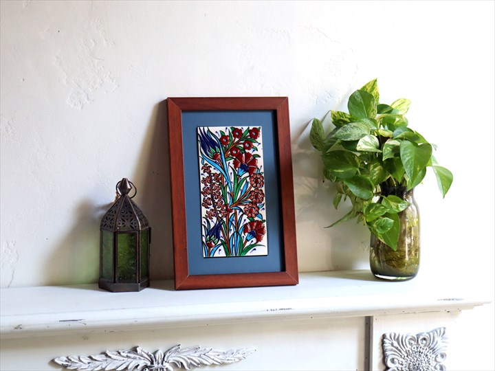 Key:タイル トルコ 陶器 イズニック キュタフヤ 手書き ハンドメイド パネル 額 インテリア 壁 ディスプレイ Iznik Tile Turkish Hand paint Handmade Ottoman Blue Mosque Kutahya