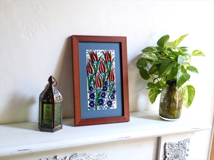 Key:タイル トルコ 陶器 イズニック キュタフヤ 手書き ハンドメイド パネル 額 インテリア 壁 ディスプレイ Iznik Tile Turkish Hand paint Handmade Ottoman Blue Mosque Kutahya