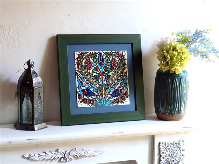 Key:タイル トルコ 陶器 イズニック キュタフヤ 手書き ハンドメイド パネル 額 インテリア 壁 ディスプレイ Iznik Tile Turkish Hand paint Handmade Ottoman Blue Mosque Kutahya