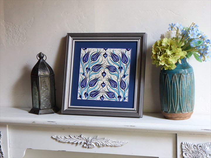 Key:タイル トルコ 陶器 イズニック キュタフヤ 手書き ハンドメイド パネル 額 インテリア 壁 ディスプレイ Iznik Tile Turkish Hand paint Handmade Ottoman Blue Mosque Kutahya