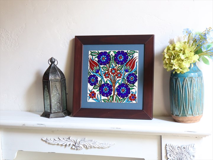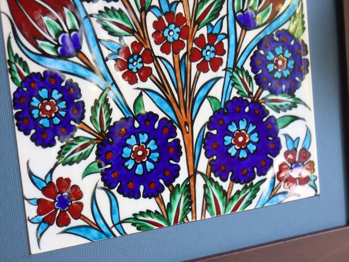 Key:タイル トルコ 陶器 イズニック キュタフヤ 手書き ハンドメイド パネル 額 インテリア 壁 ディスプレイ Iznik Tile Turkish Hand paint Handmade Ottoman Blue Mosque Kutahya