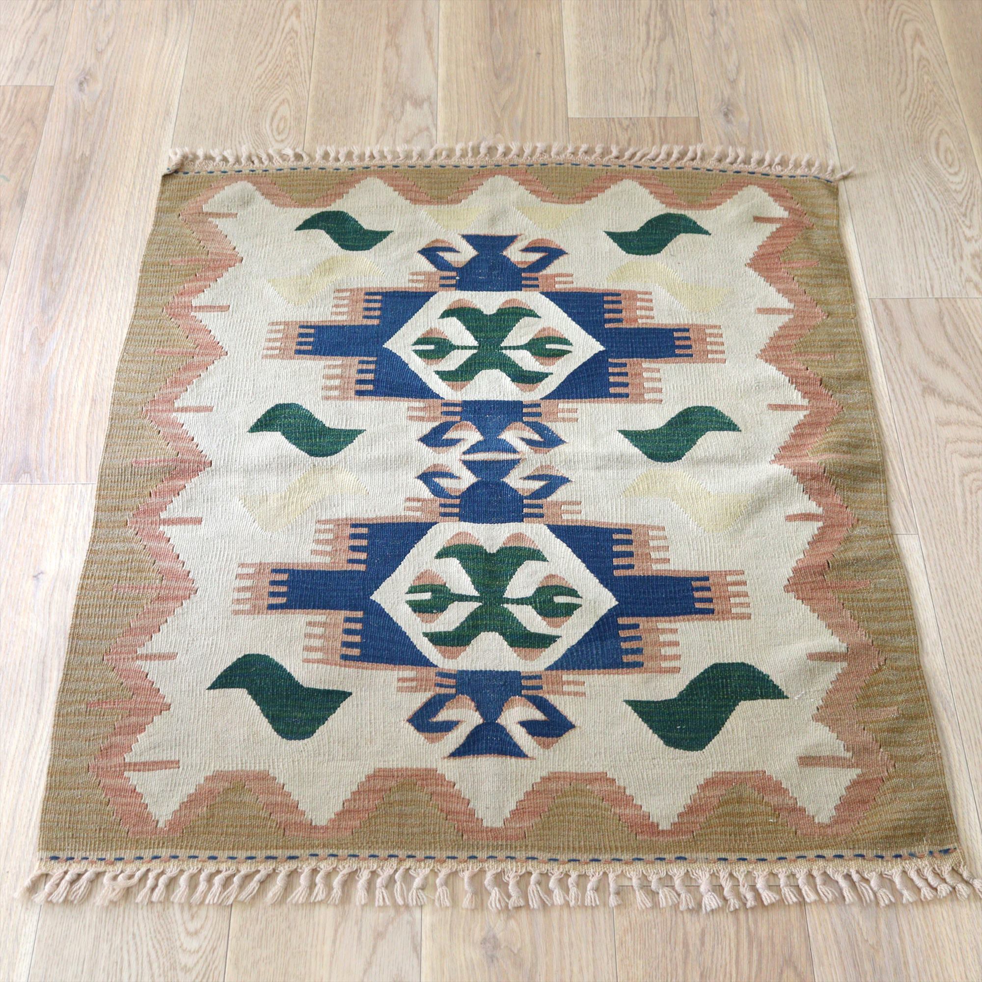 トルコの手織りキリム ウシャク112×91cm 狼の口 ベージュ