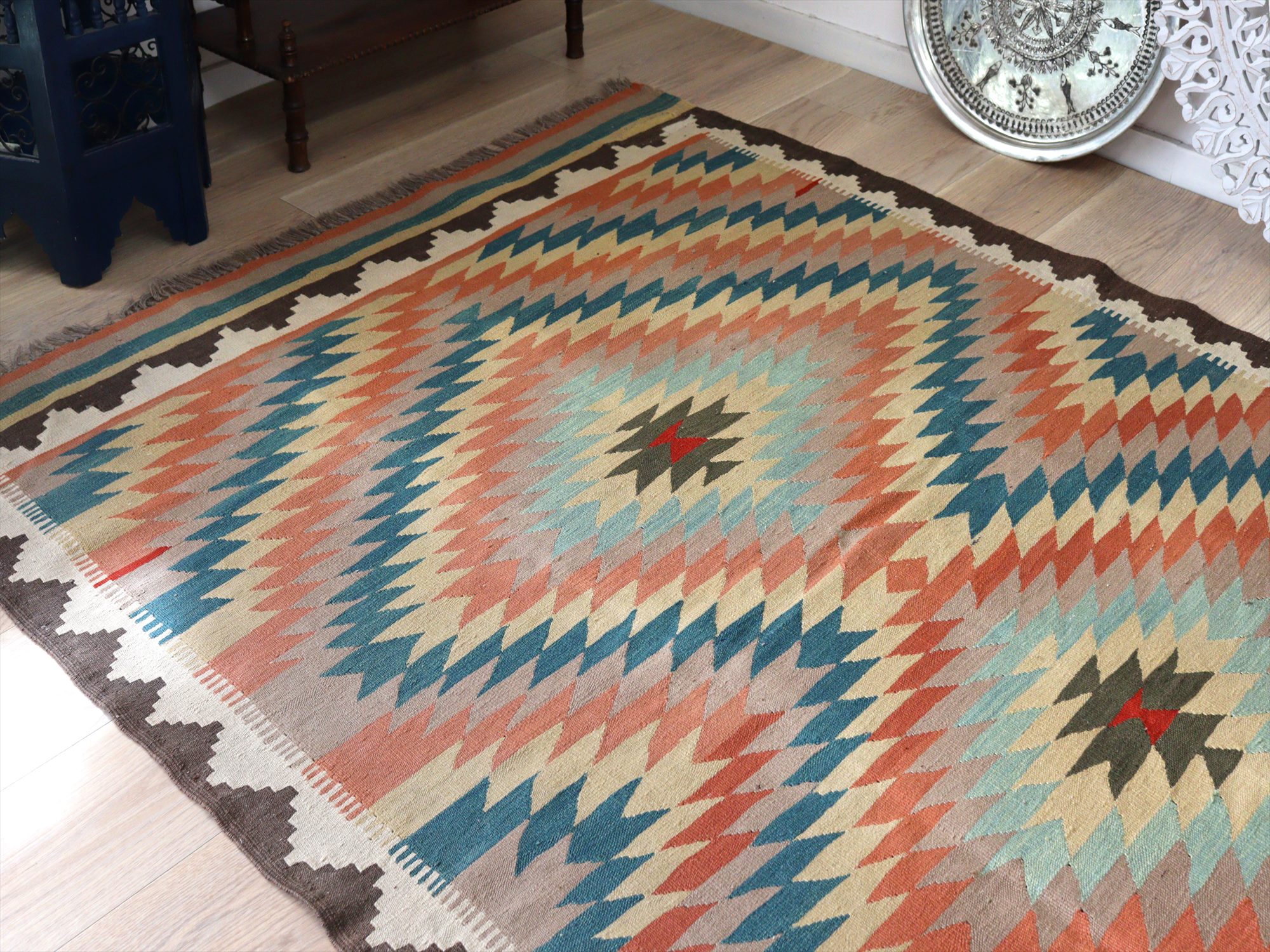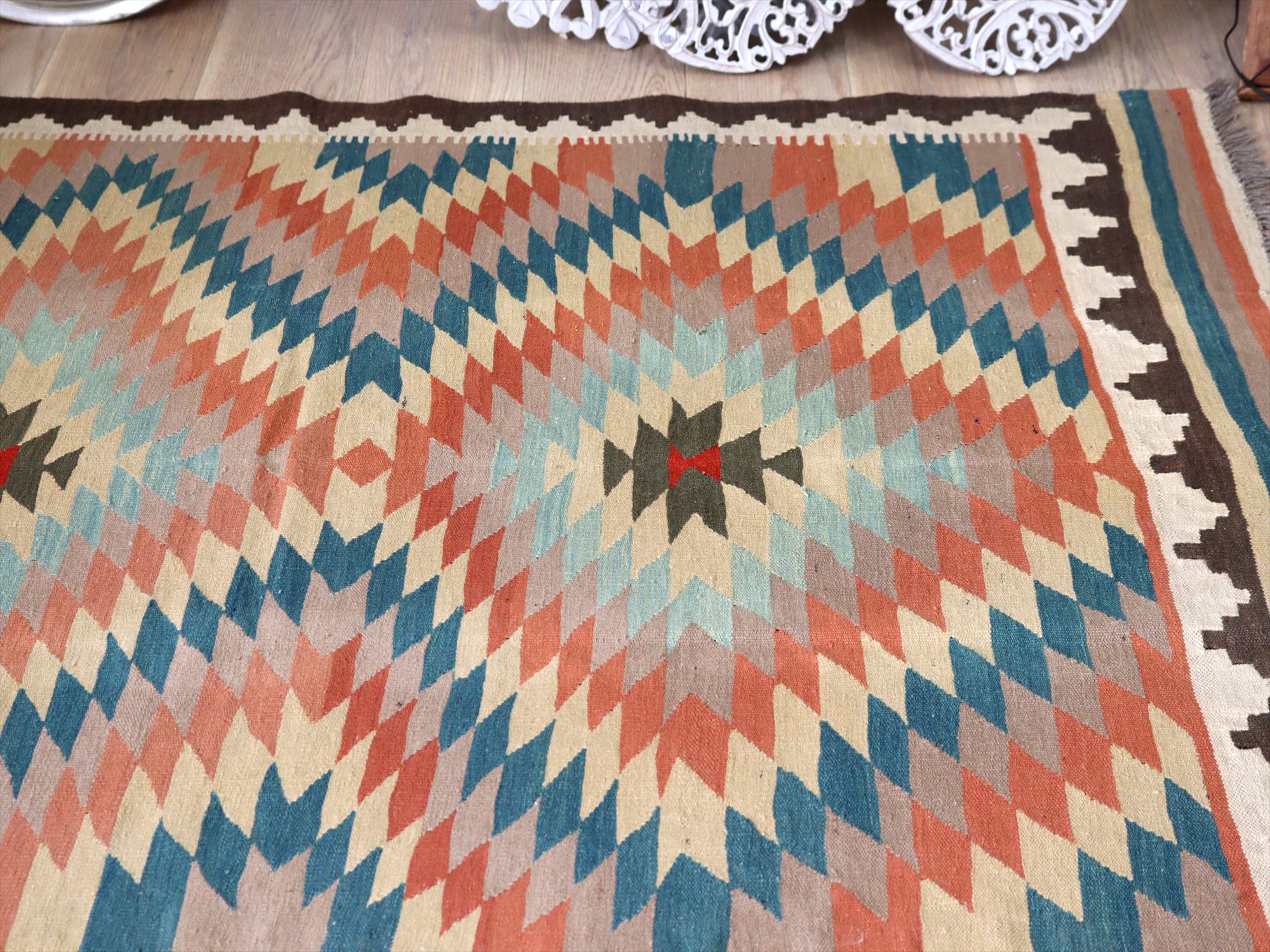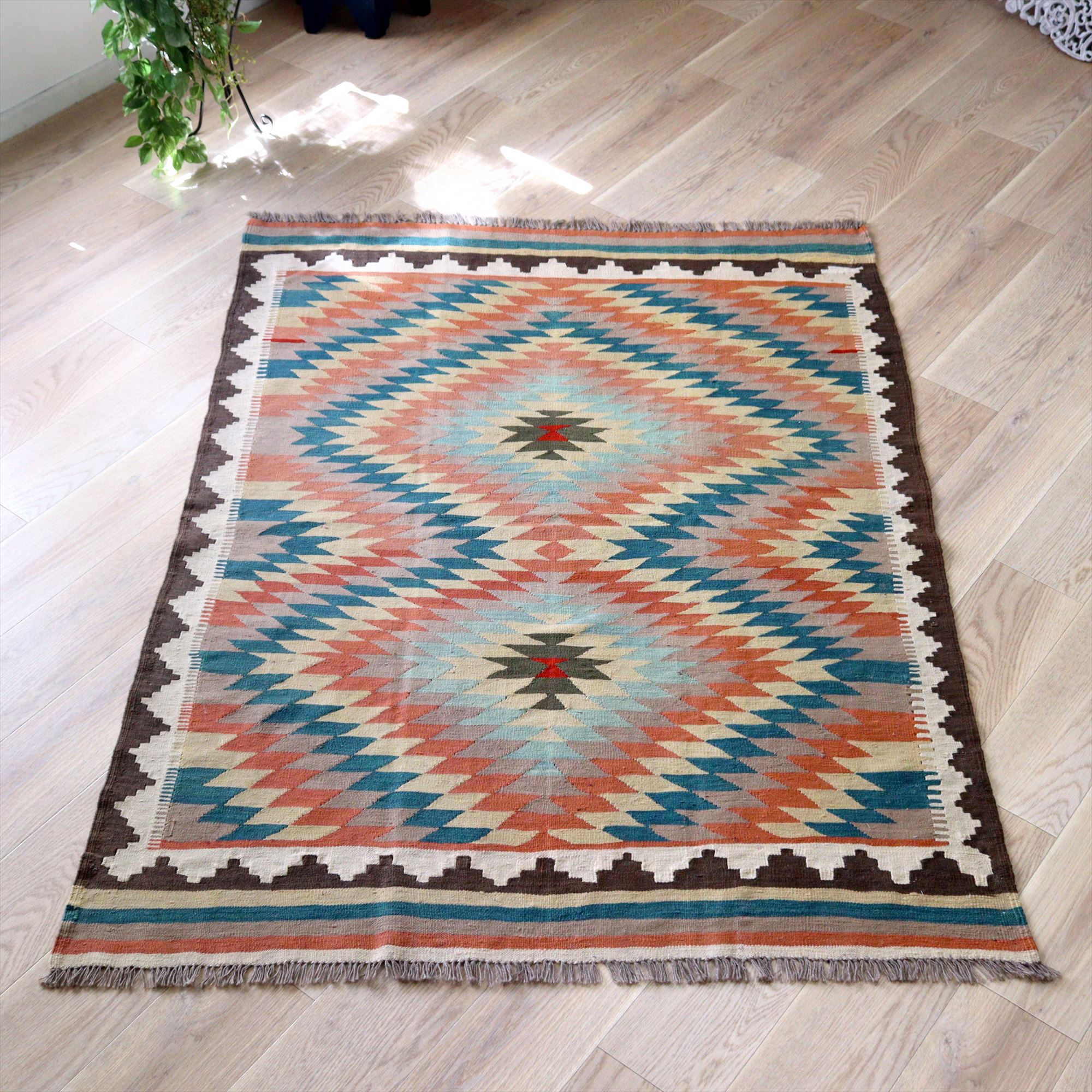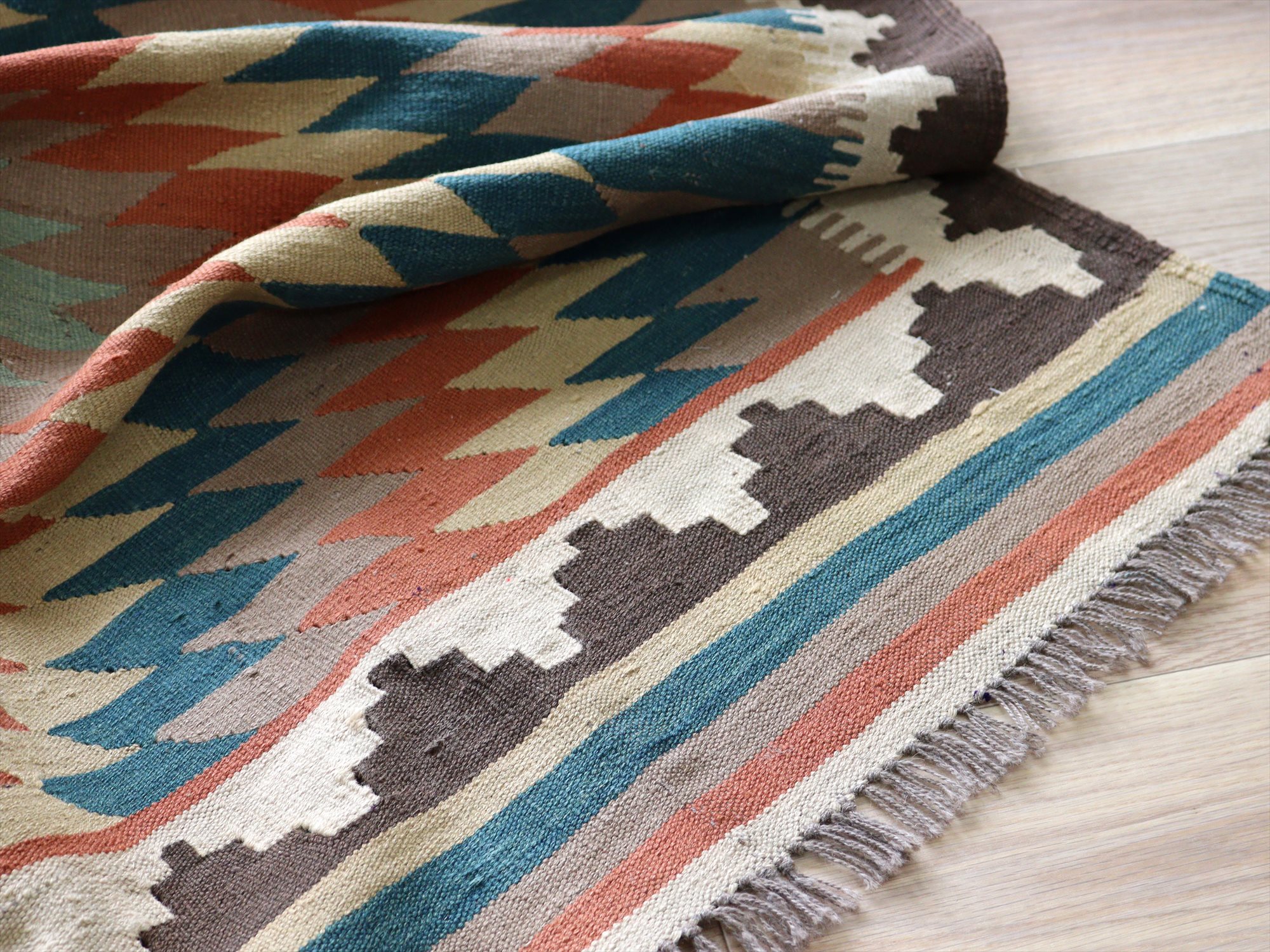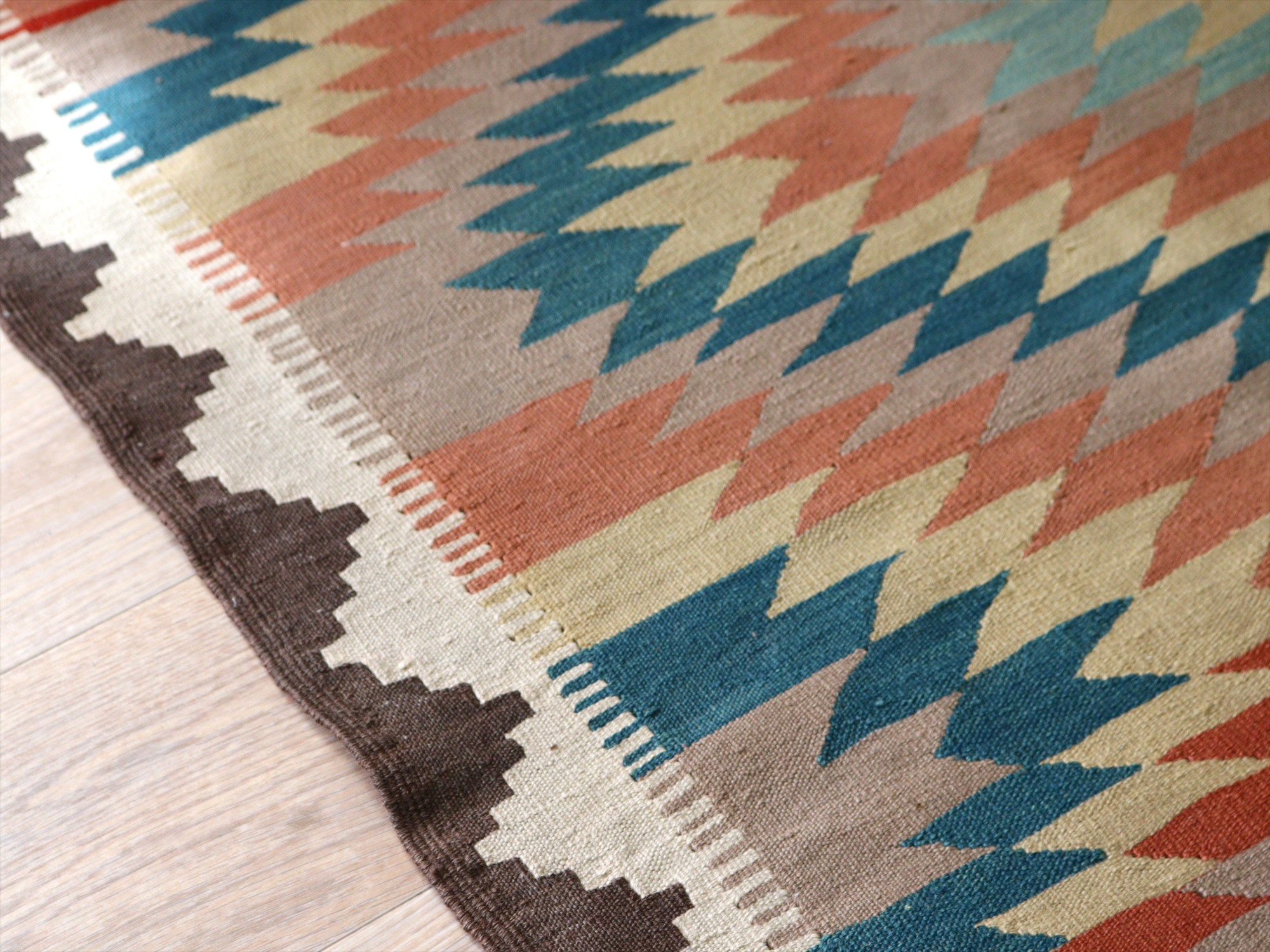 アフガンキリム 連なるジグザグ187×141cm アースカラー