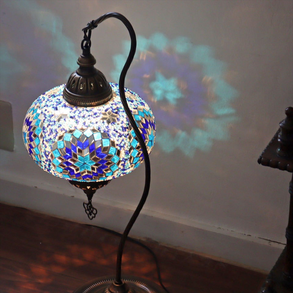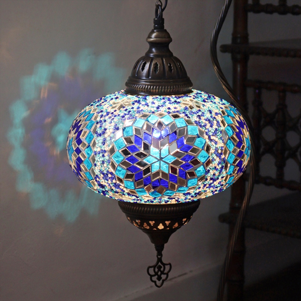 トルコランプ モザイクスタンドランプ ハンギング 全高62cm ガラス直径24cm ブルー