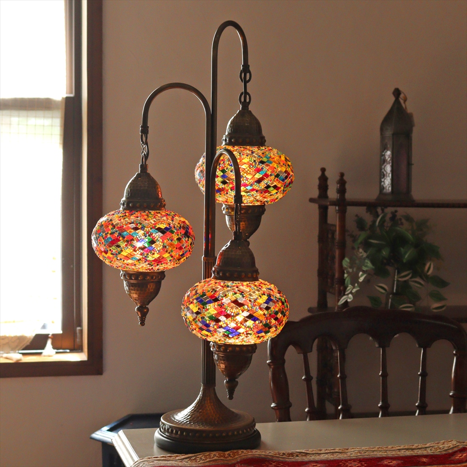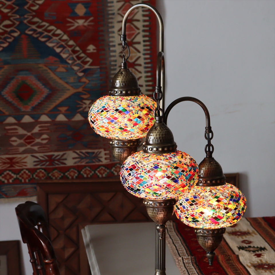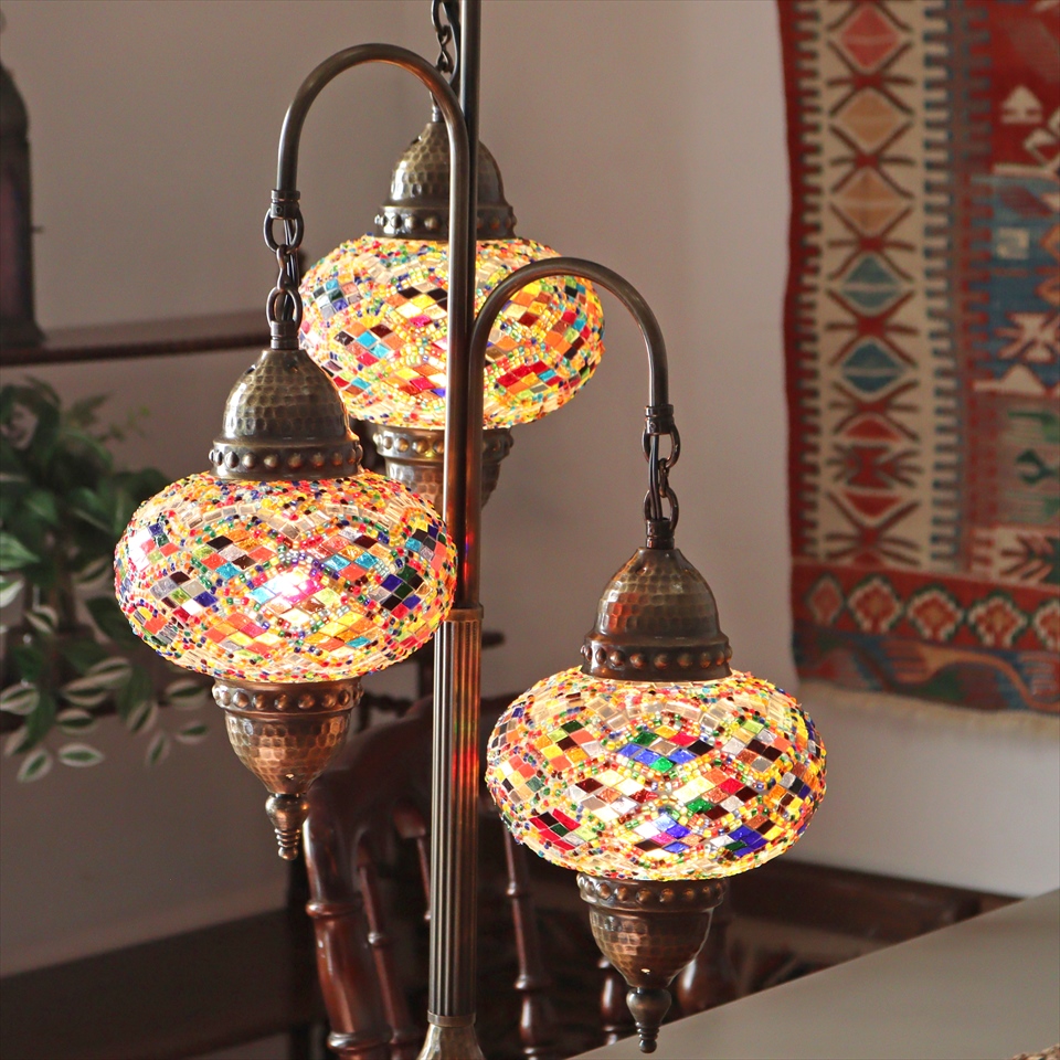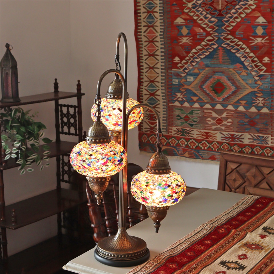 トルコランプ モザイクランプ テーブルシャンデリア 3灯 全高69cm 直径36cm ミックスカラー