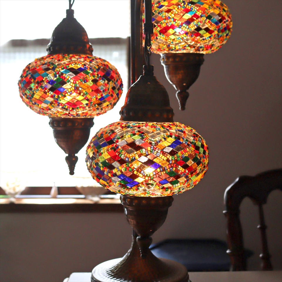 Key:テーブルランプ フロアランプ トルコランプ モザイクランプ 照明 置き型シャンデリア 多灯ランプ デスクライト ガラスランプ 卓上照明 中間スイッチ付き