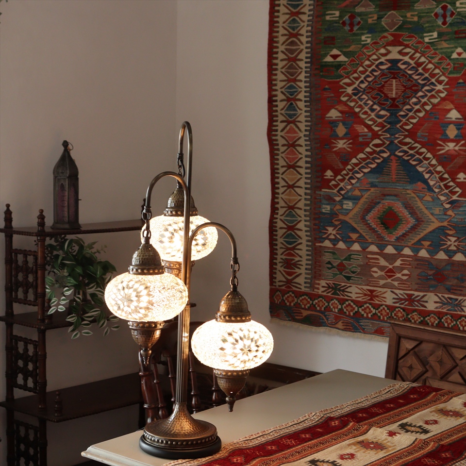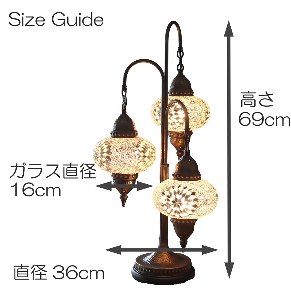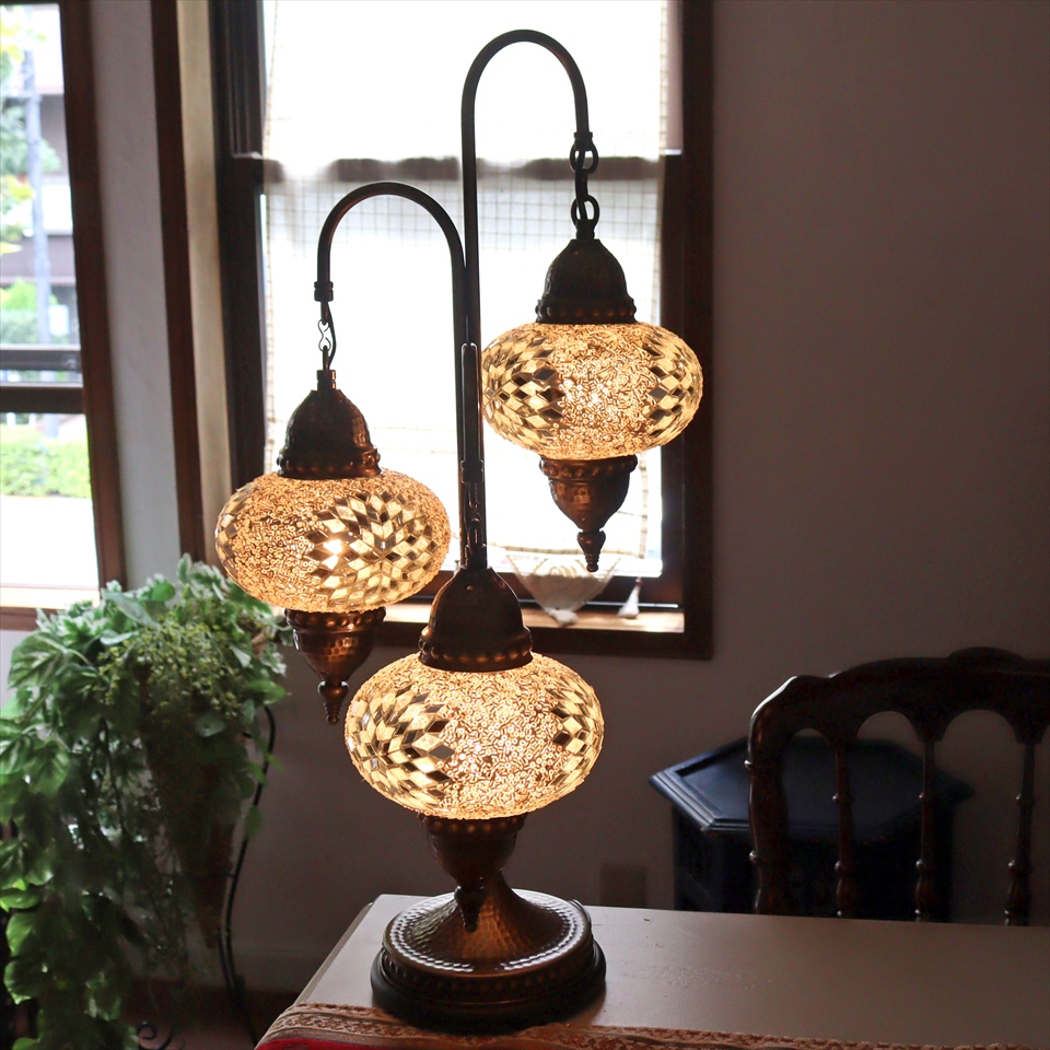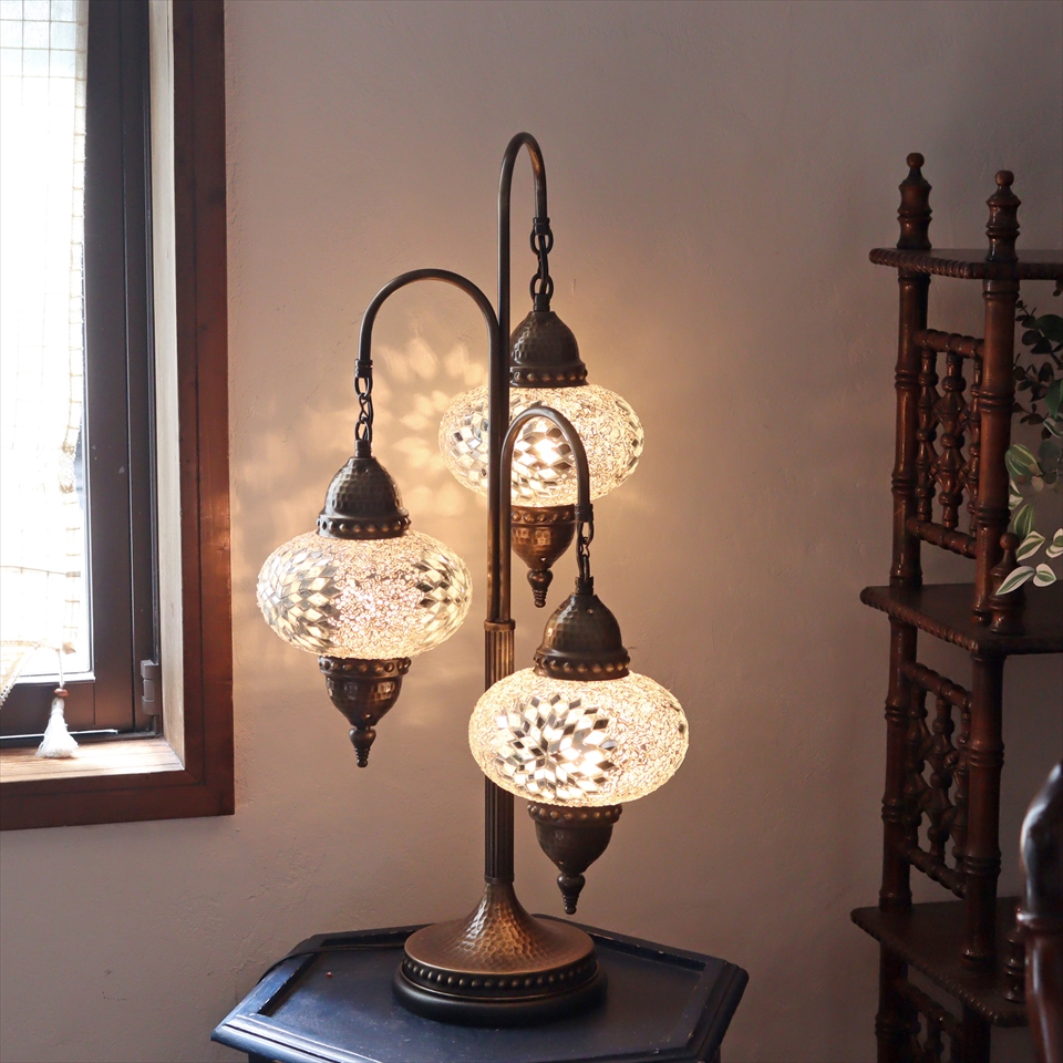 トルコランプ モザイクランプ テーブルシャンデリア 3灯 全高69cm 直径36cm ホワイト