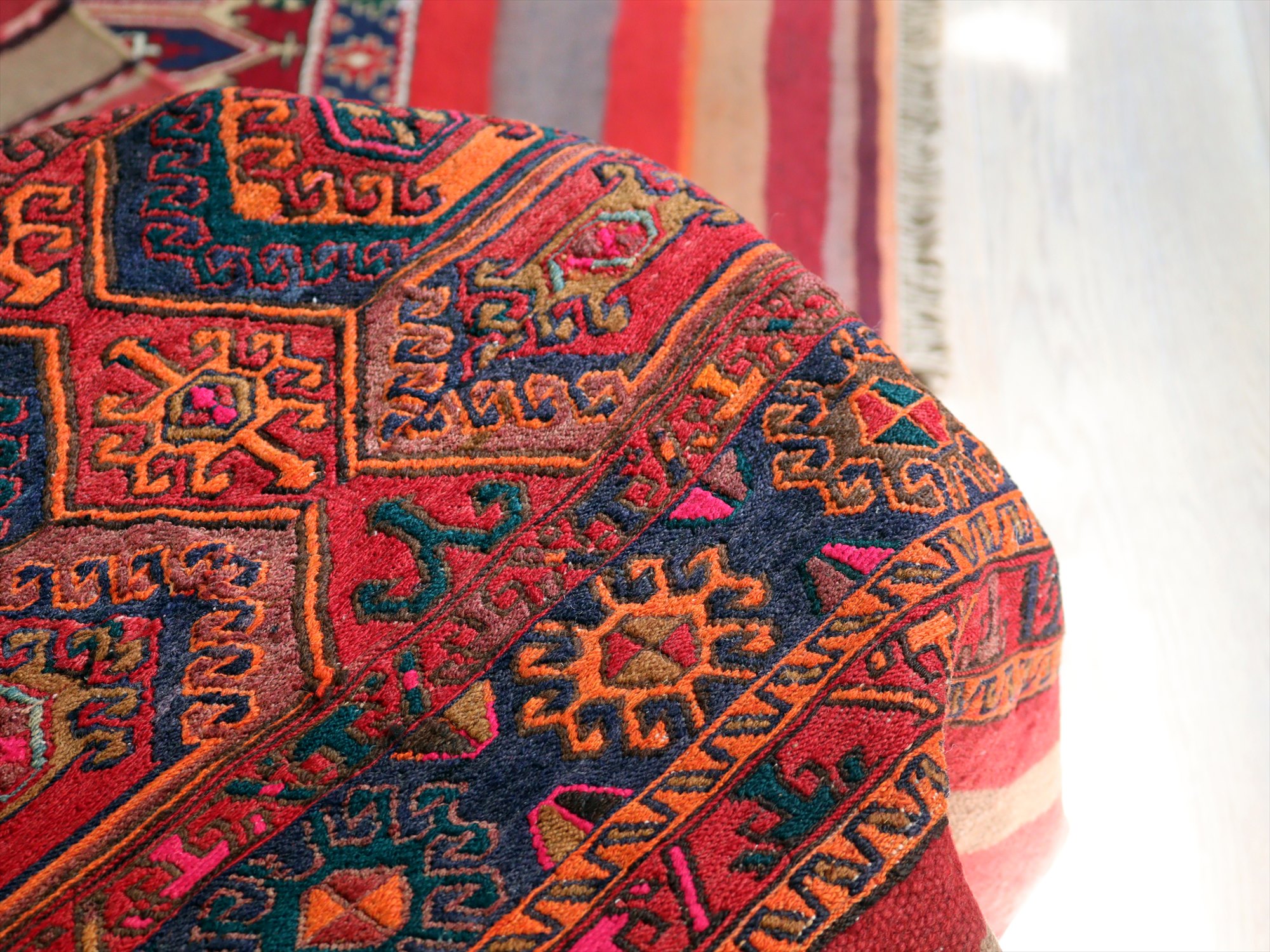 モチーフ部分は緻密なスマックで織られ、がっしりとした厚みあります。