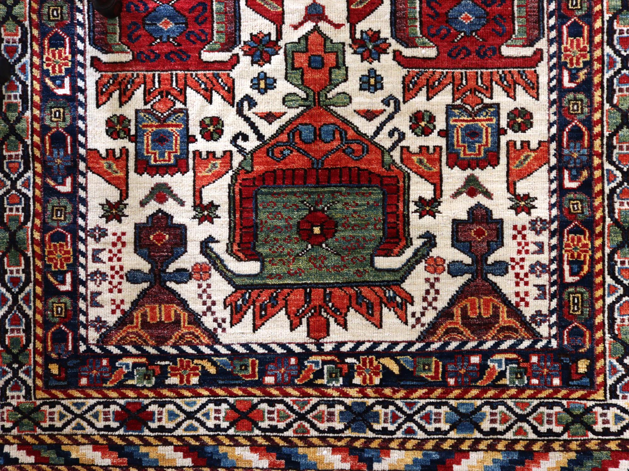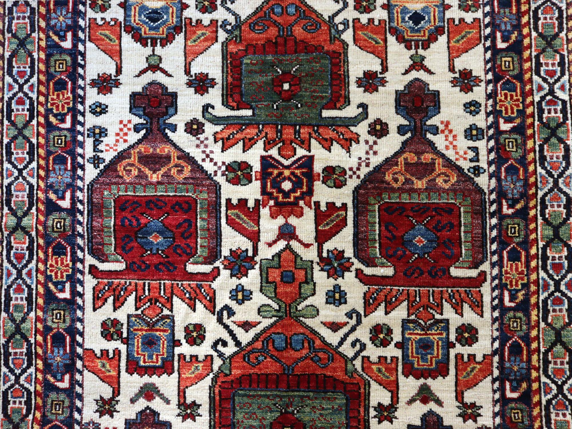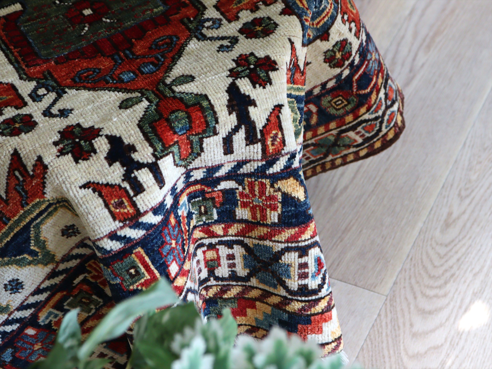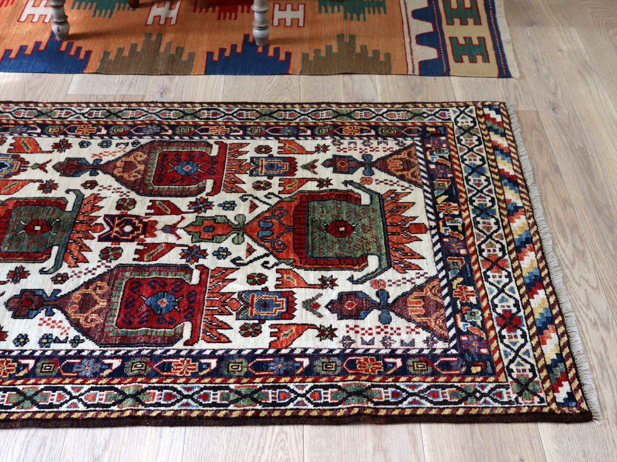 手織りラグ 小花と幾何学模様152×104cm トルコの手織り絨毯 ベージュ 草木染