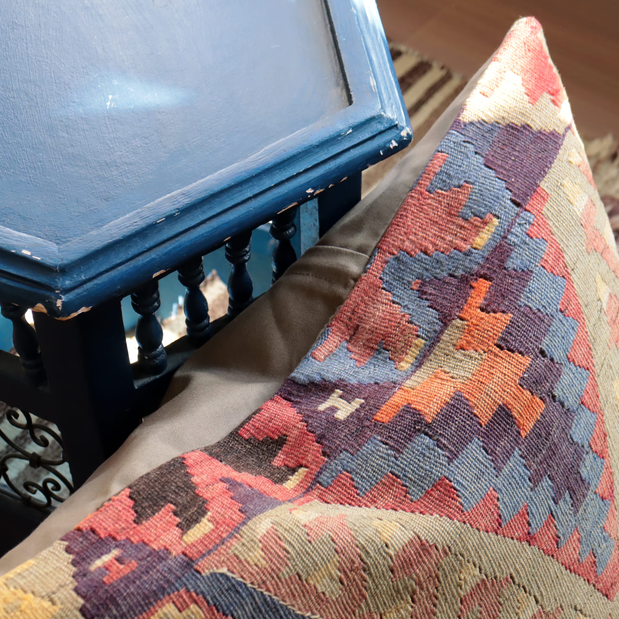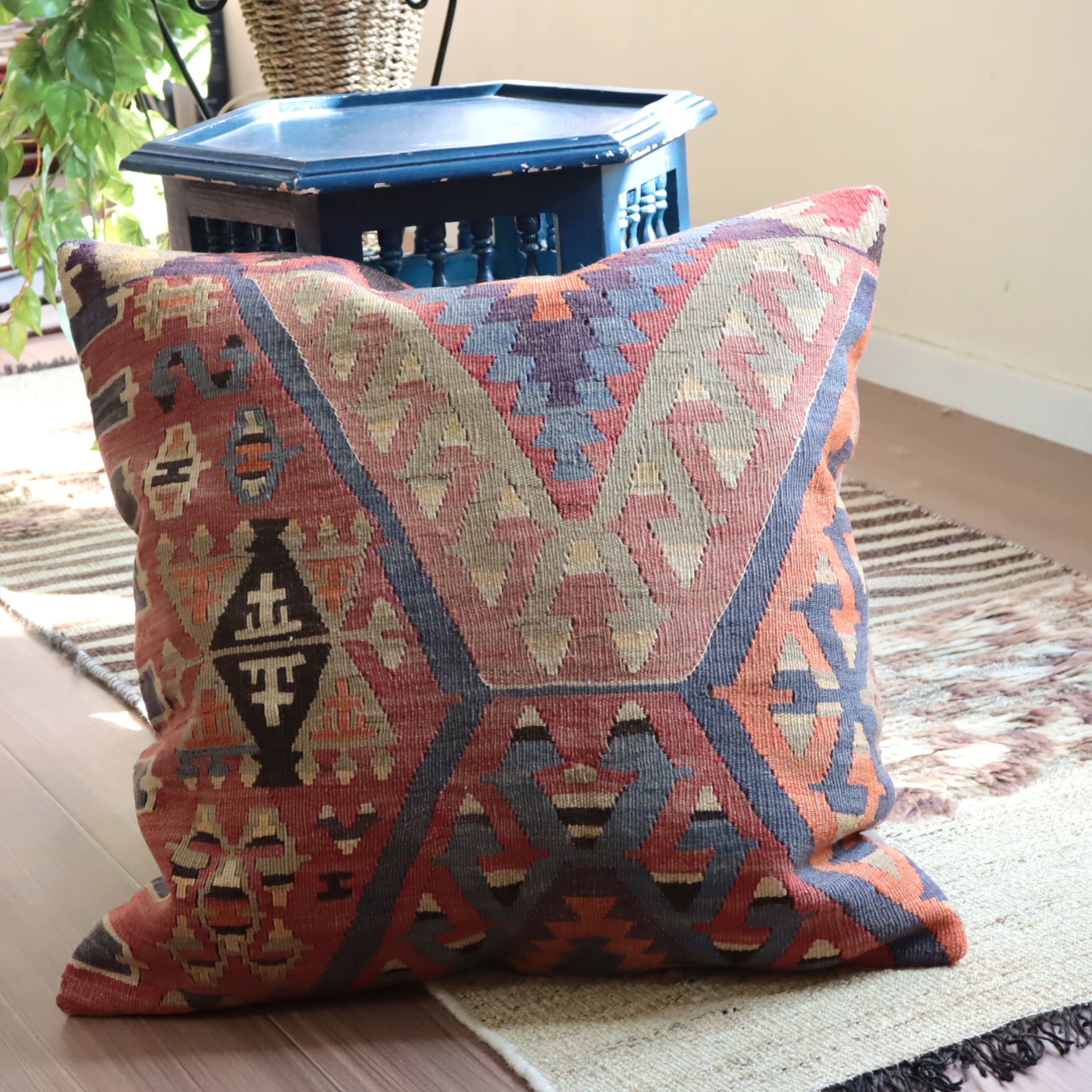 キリムクッションカバー 60cm オールドキリム59×58cm ヴィンテージラグ トルコ エシュメ地方