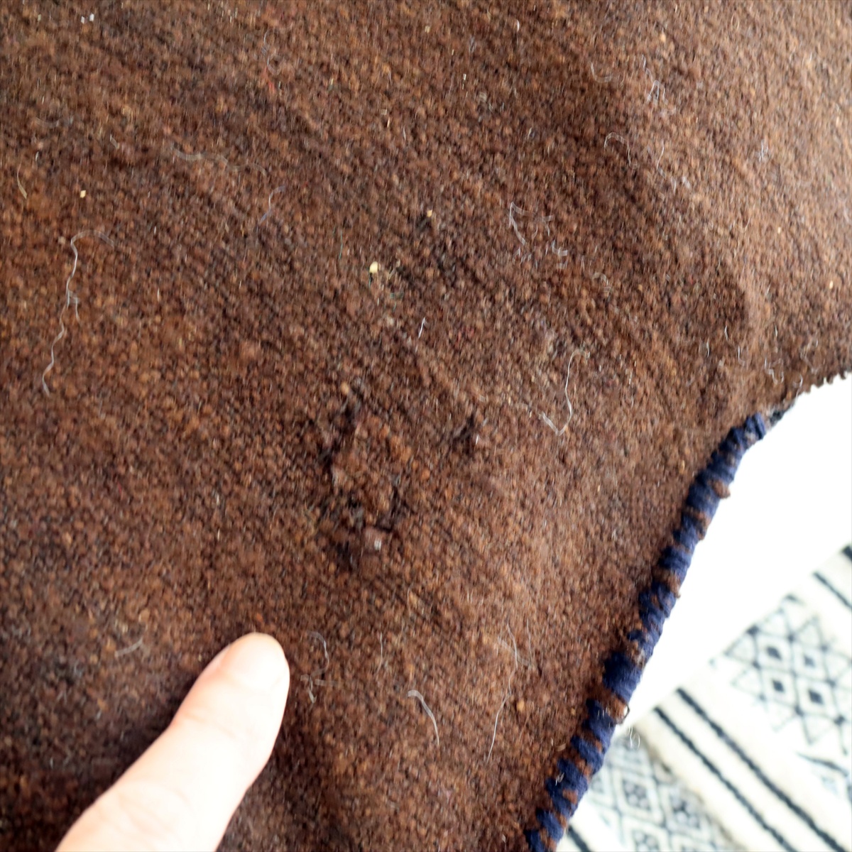 表面の織りで白く見えている部分はアクリル毛糸が使われています。
