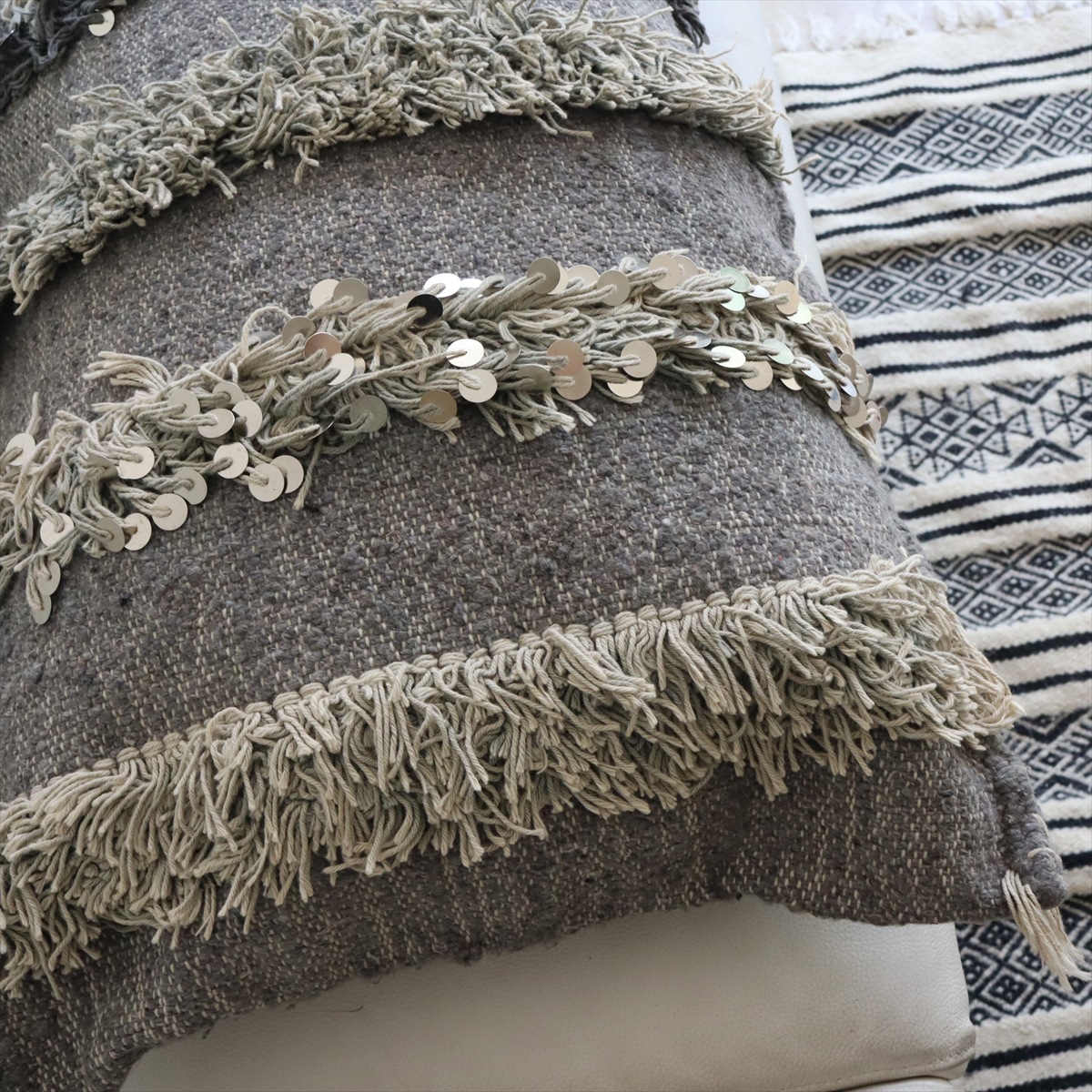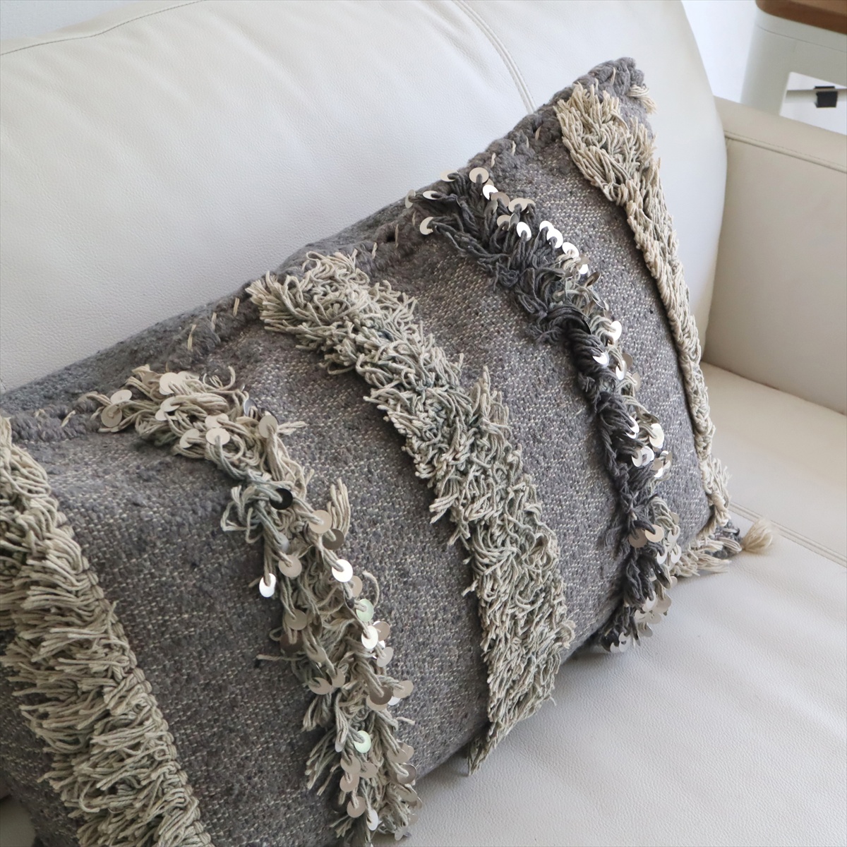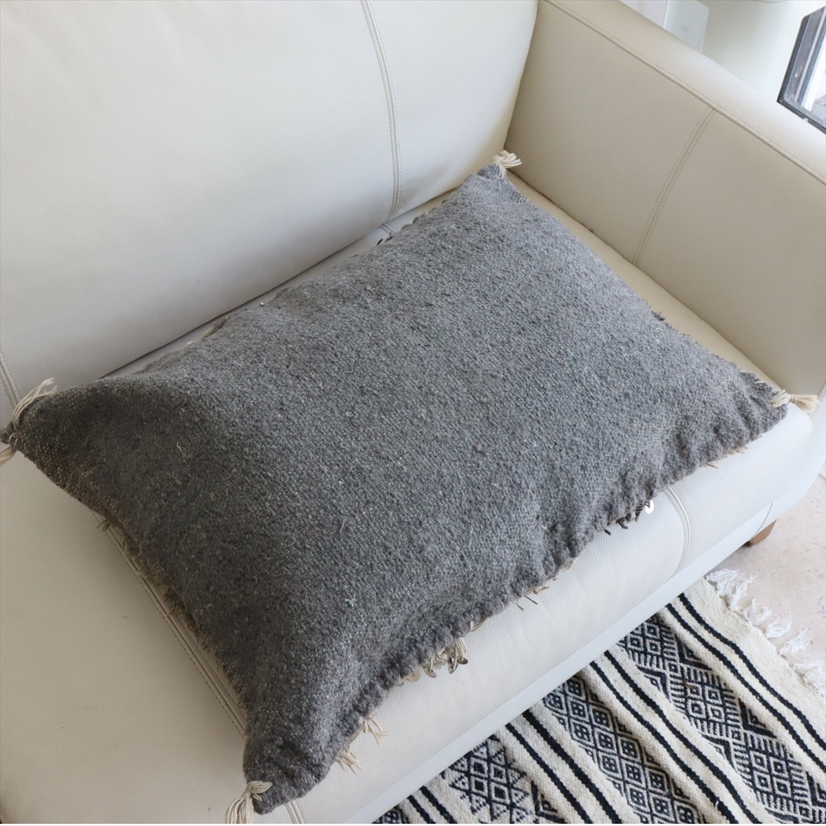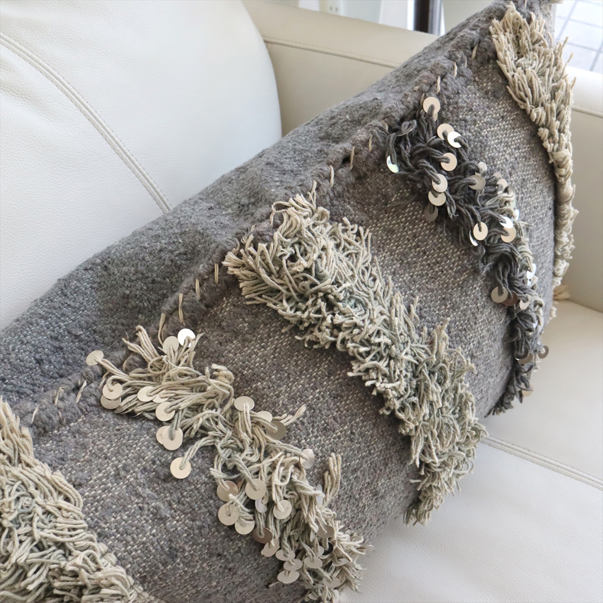 オールドキリムクッション モロッコ オリジナル62×43cm ベルベル族 ハンドラ グレー スパンコール