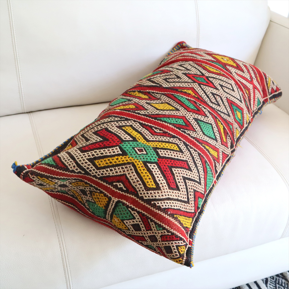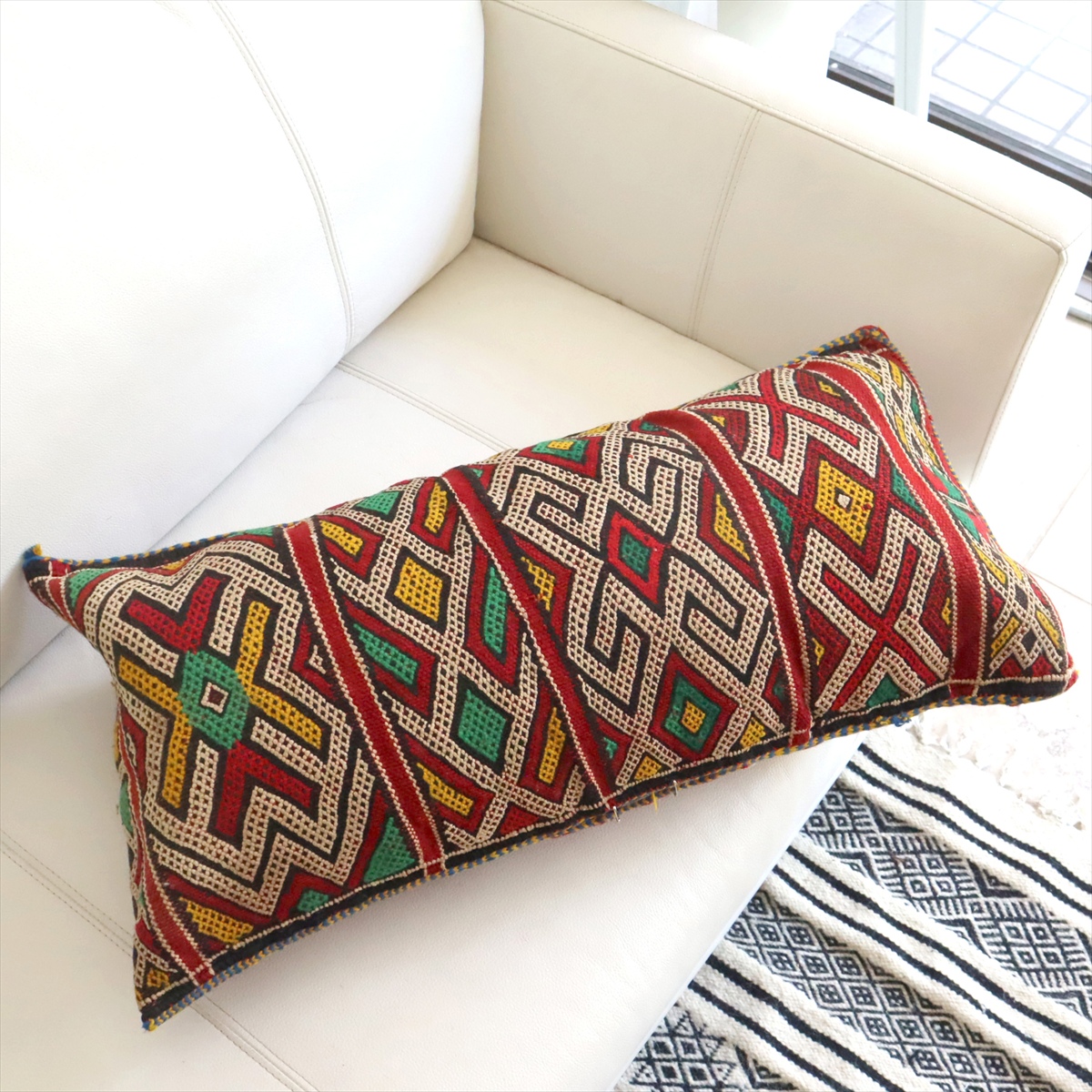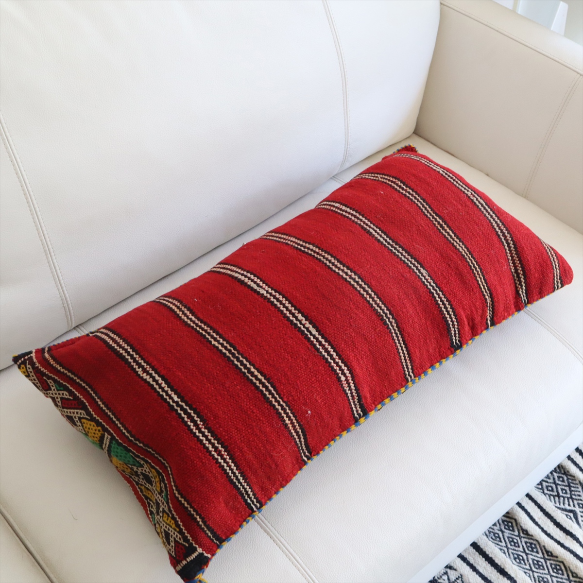 オールドキリムクッション モロッコ オリジナル66×33cm ベルベル族 細かなジジム織り