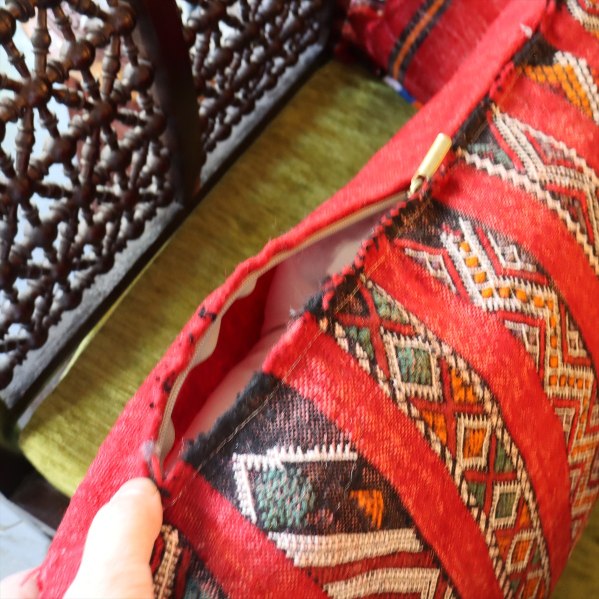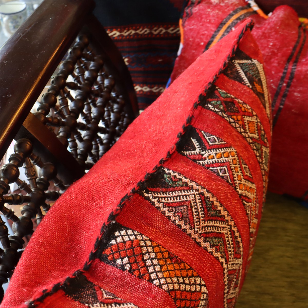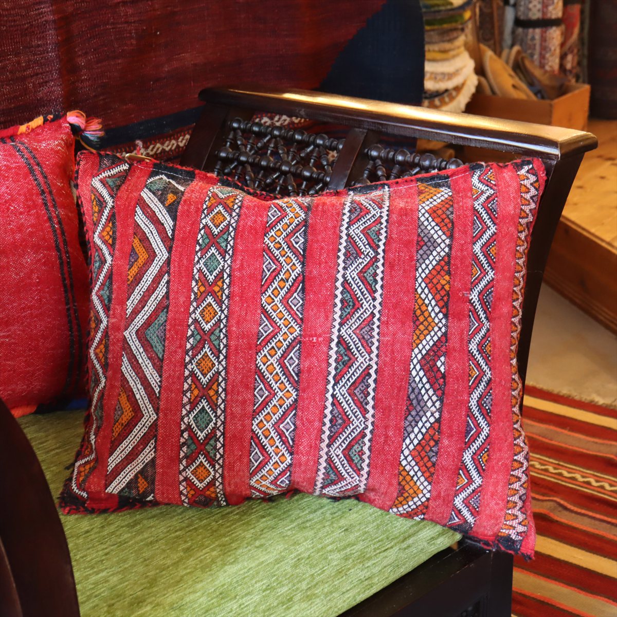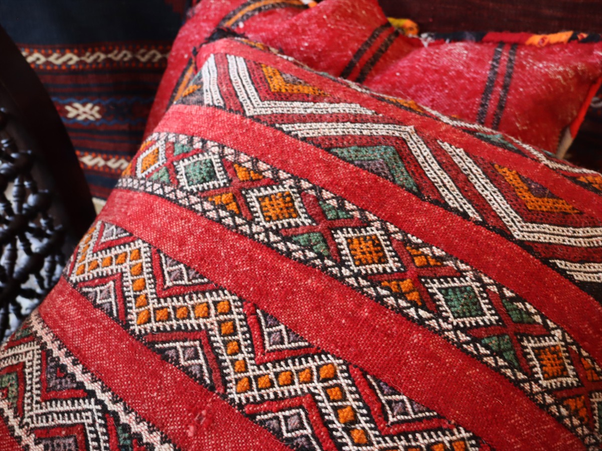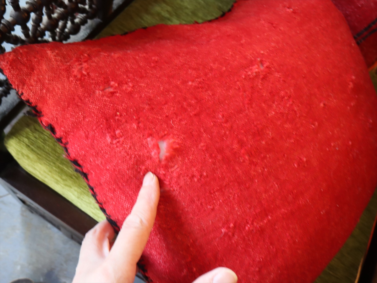 オールドキリムクッション モロッコ オリジナル47×40cm OUTLET ホツレあり ゼモール レッド ジジム織り