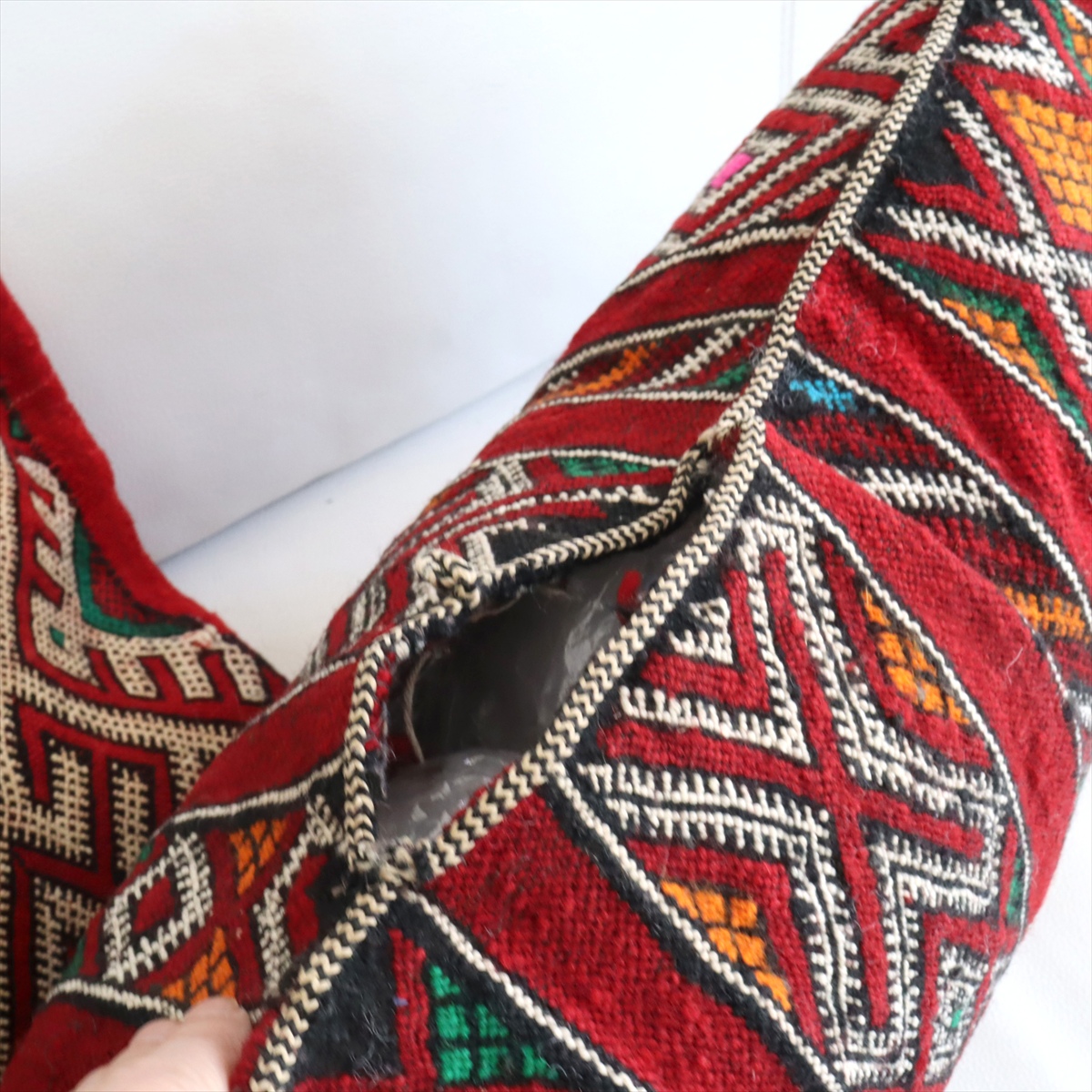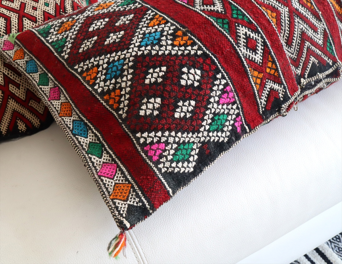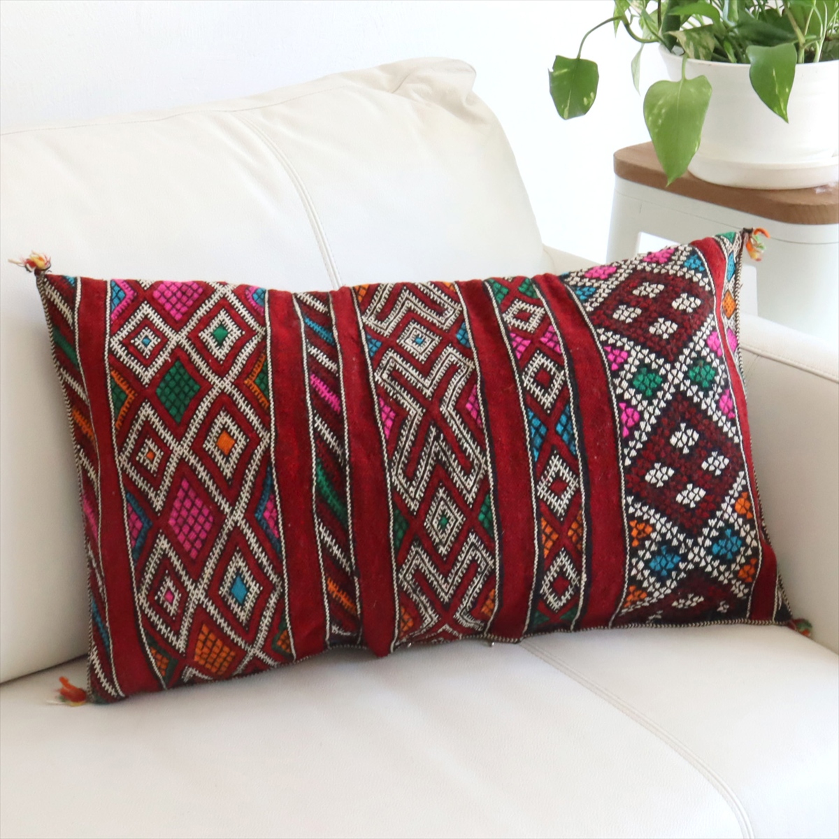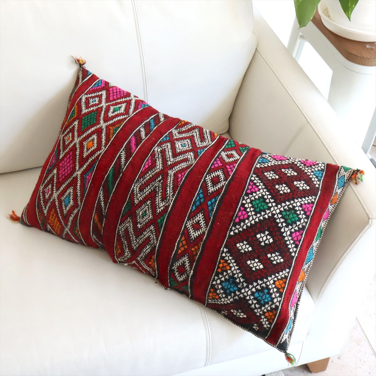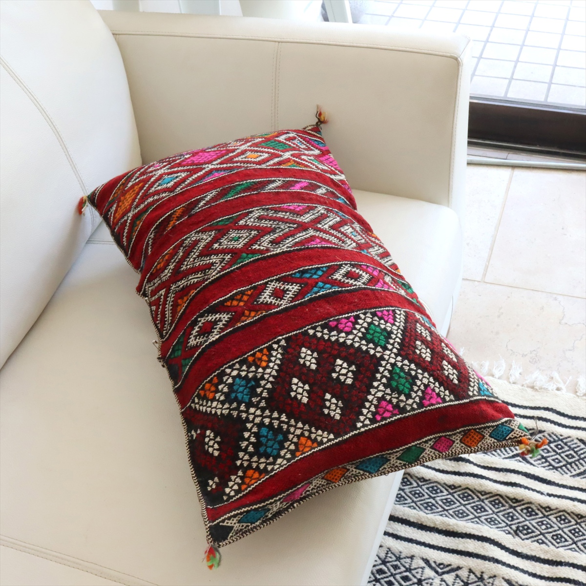 オールドキリムクッション モロッコ オリジナル58×35cm ベルベル族 レッドジジム ボーダー