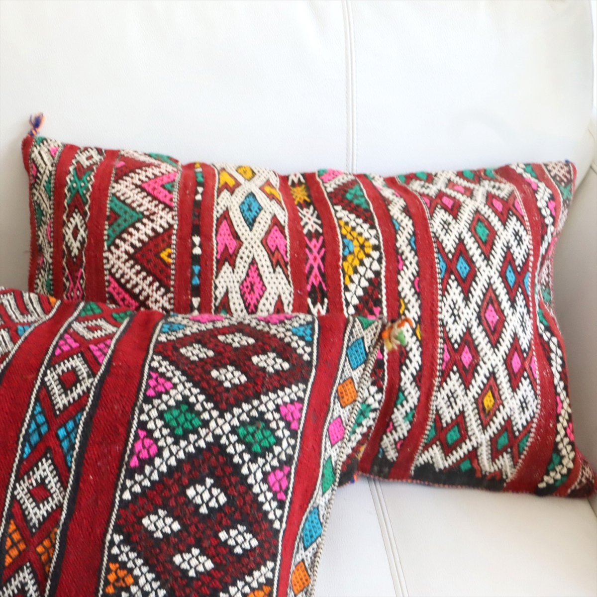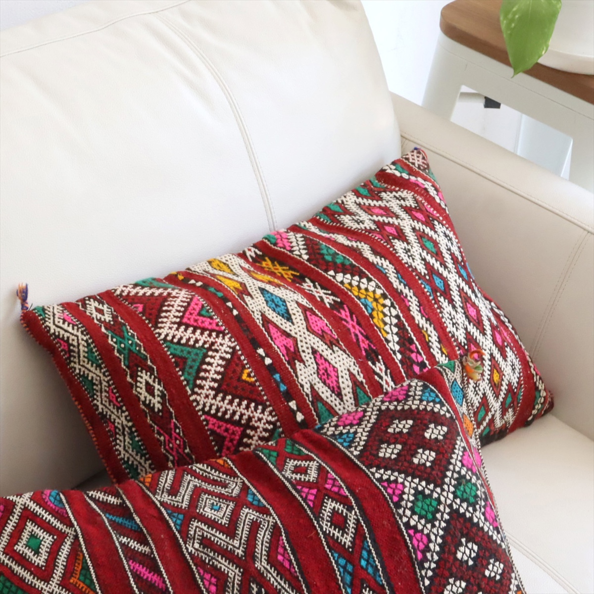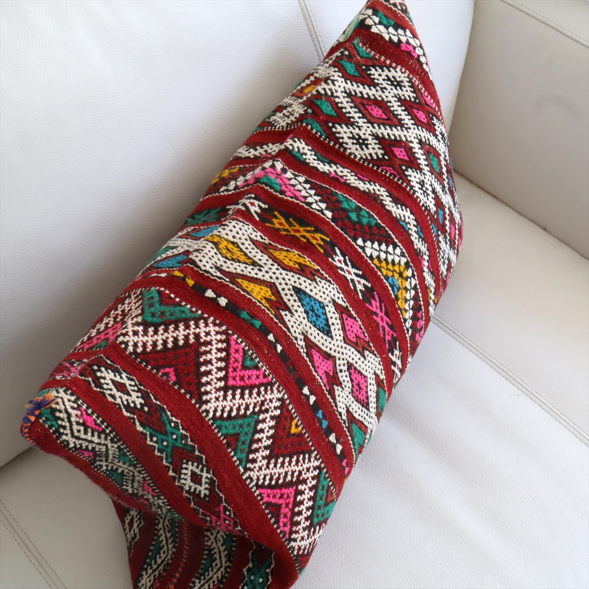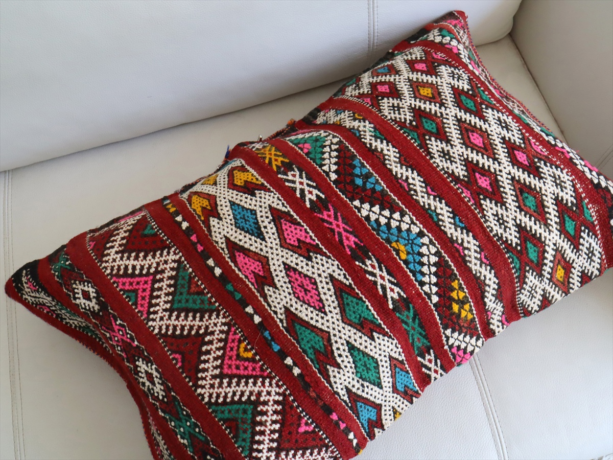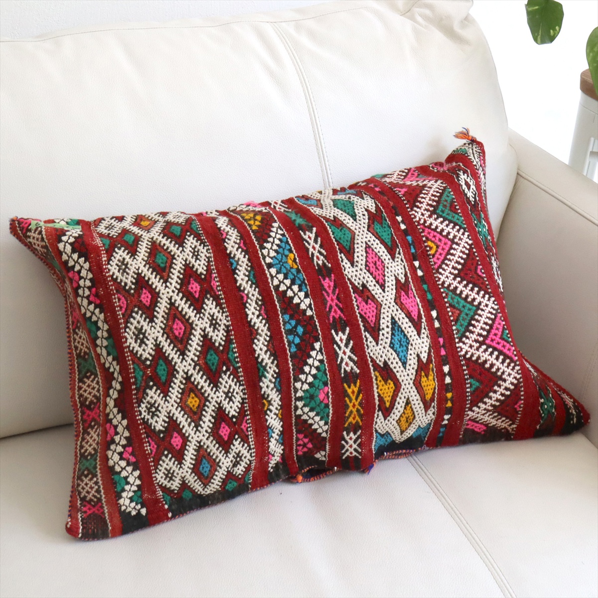 オールドキリムクッション モロッコ オリジナル55×36cm ベルベル族 レッドジジム ボーダー