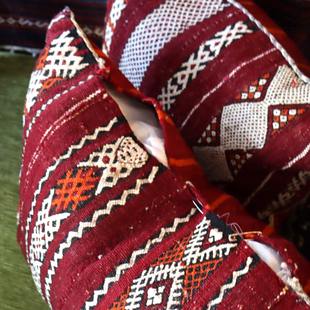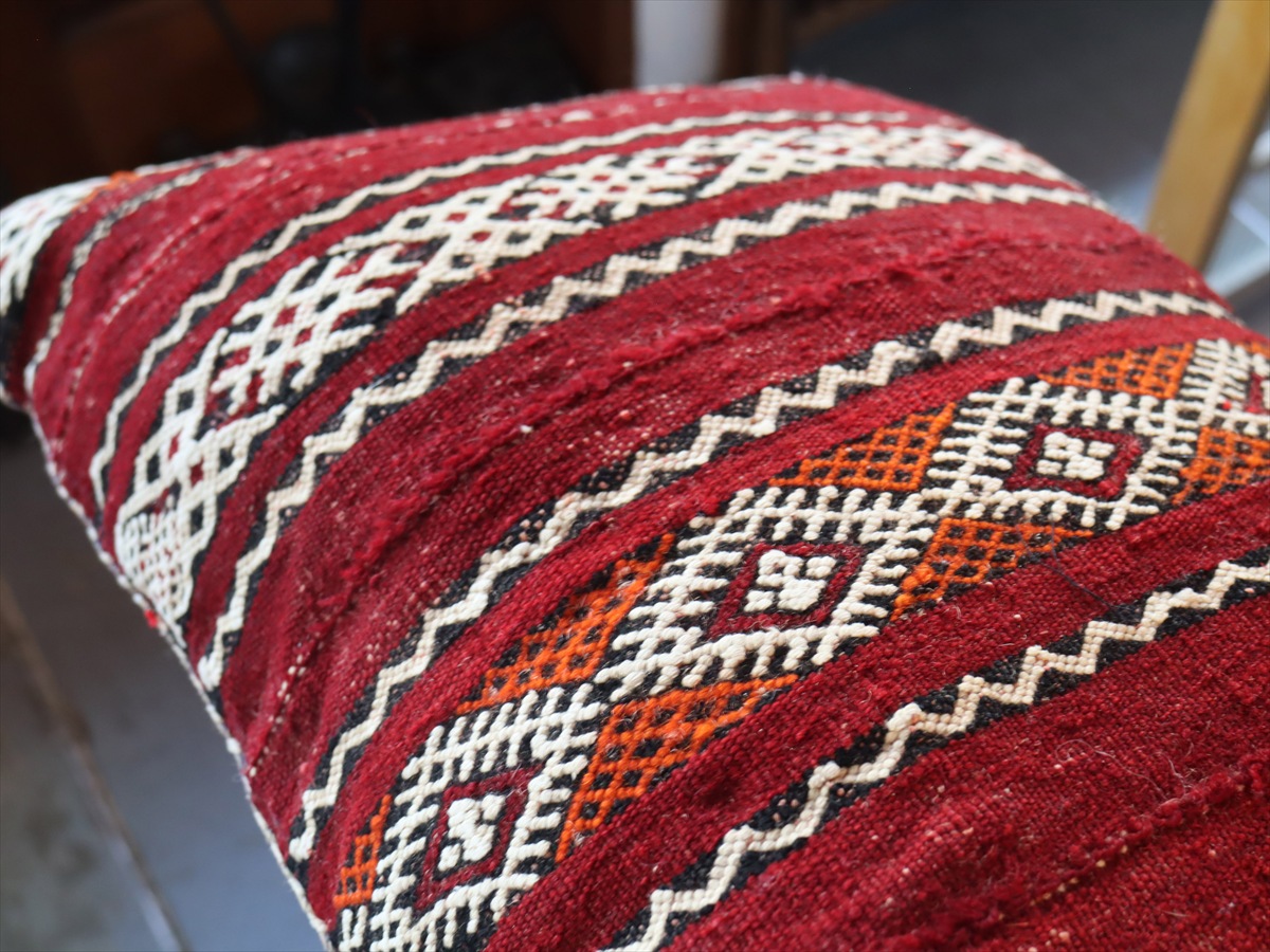 オールドキリムクッション モロッコ オリジナル45×34cm ゼモール レッド&ホワイト