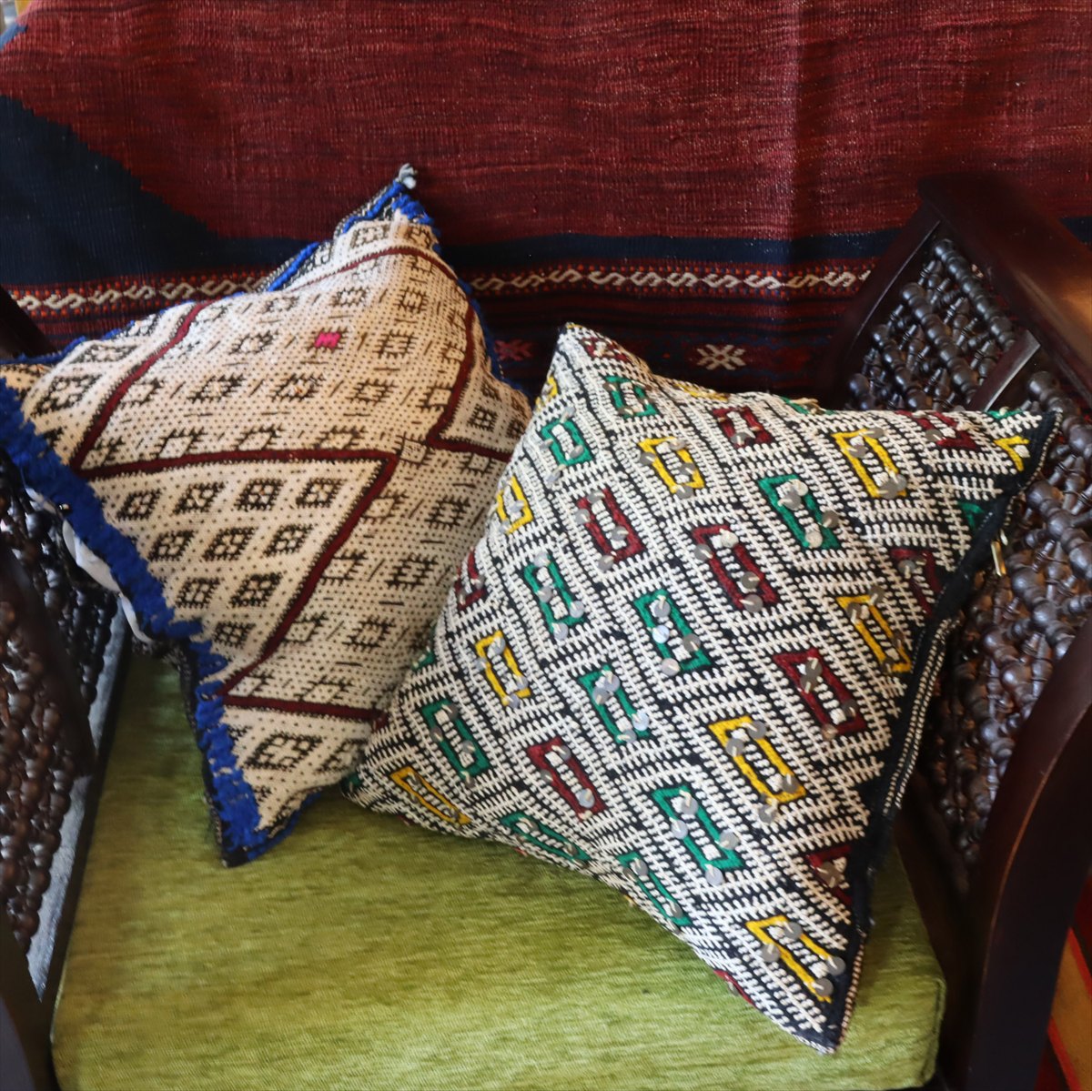 オールドキリムクッション モロッコ オリジナル40×40cm ゼアン ナナメのタイル スパンコール