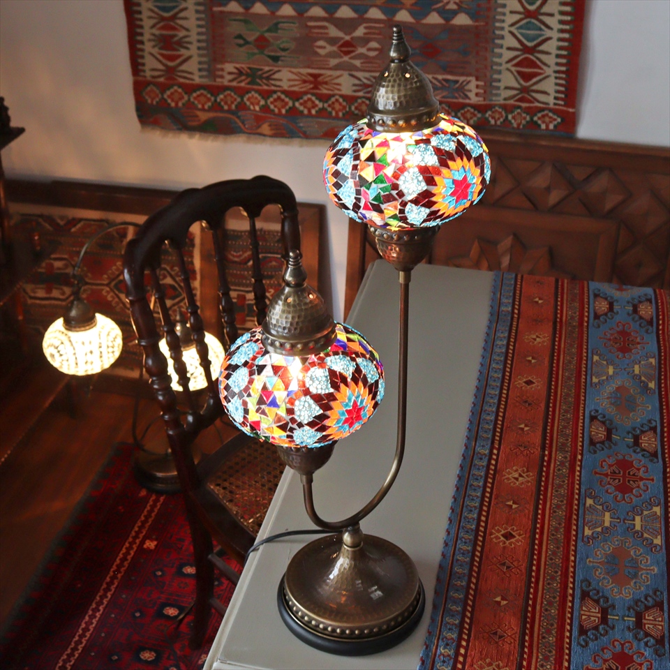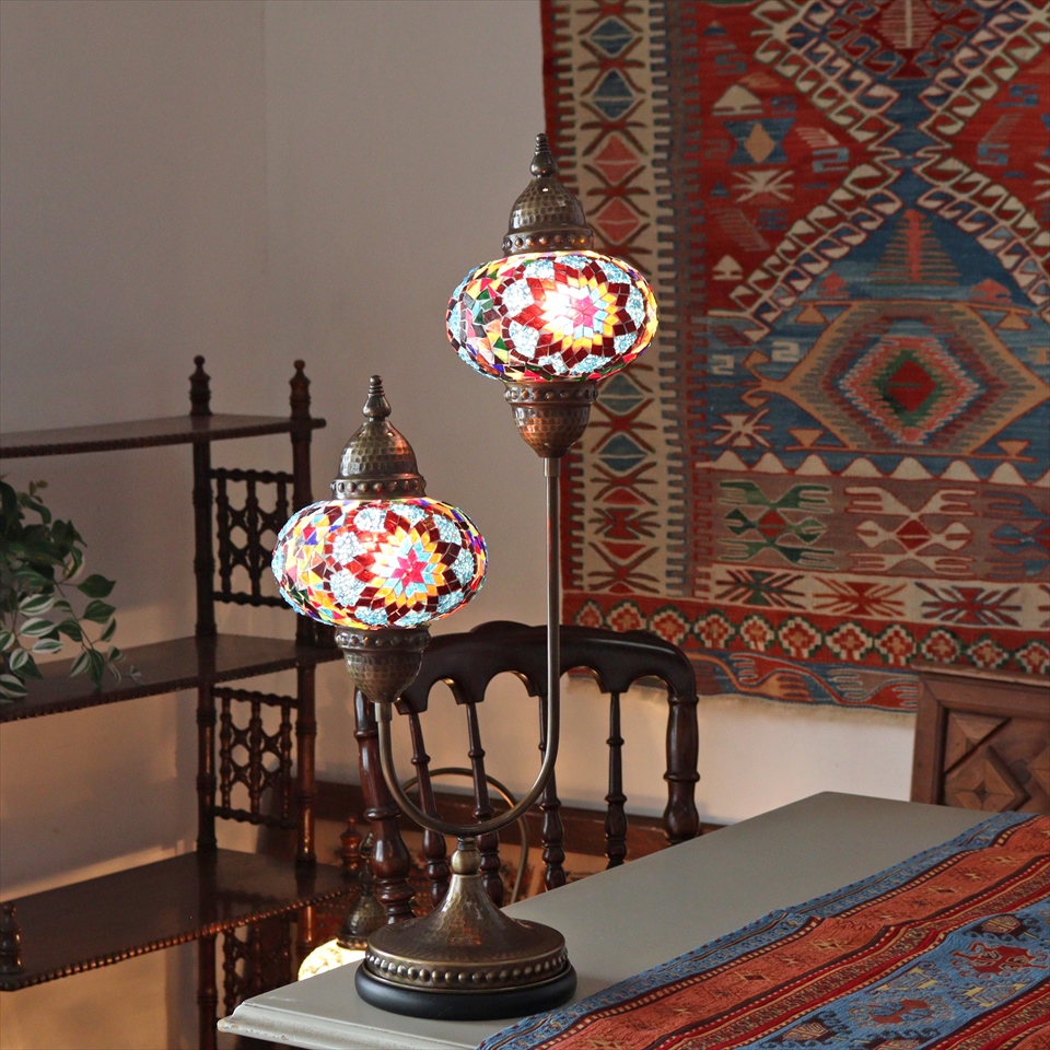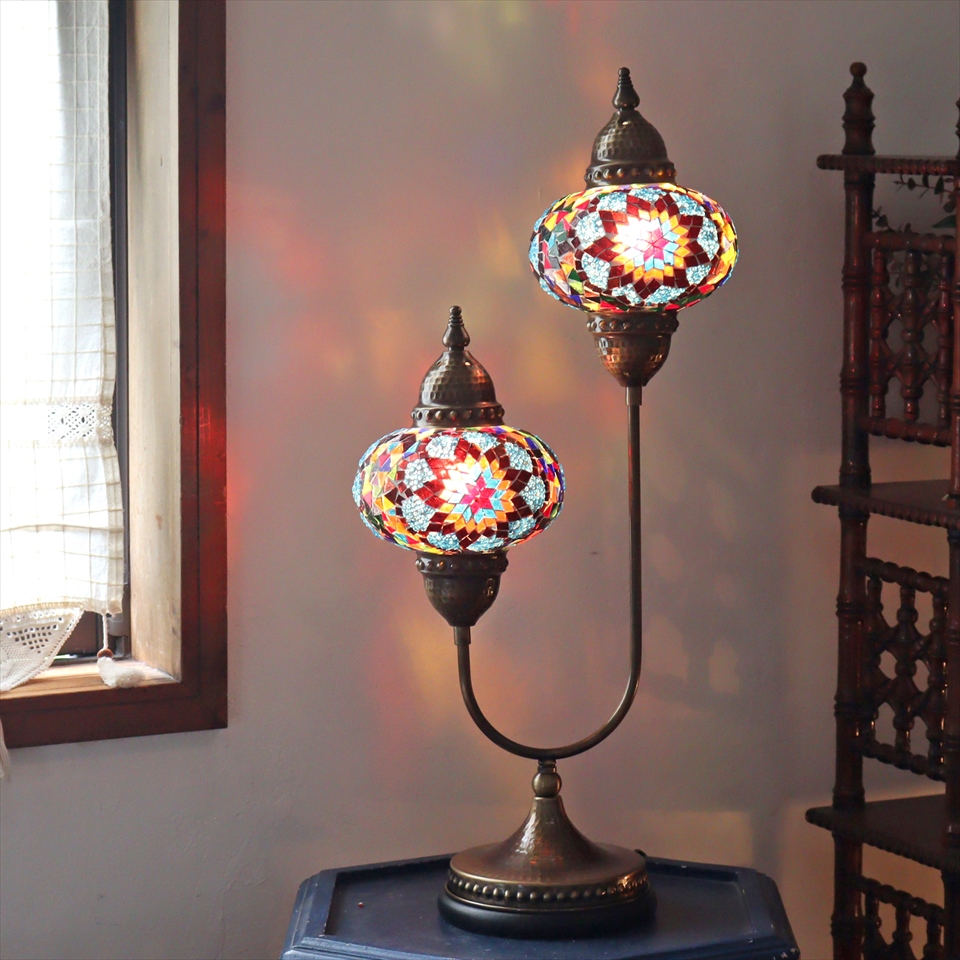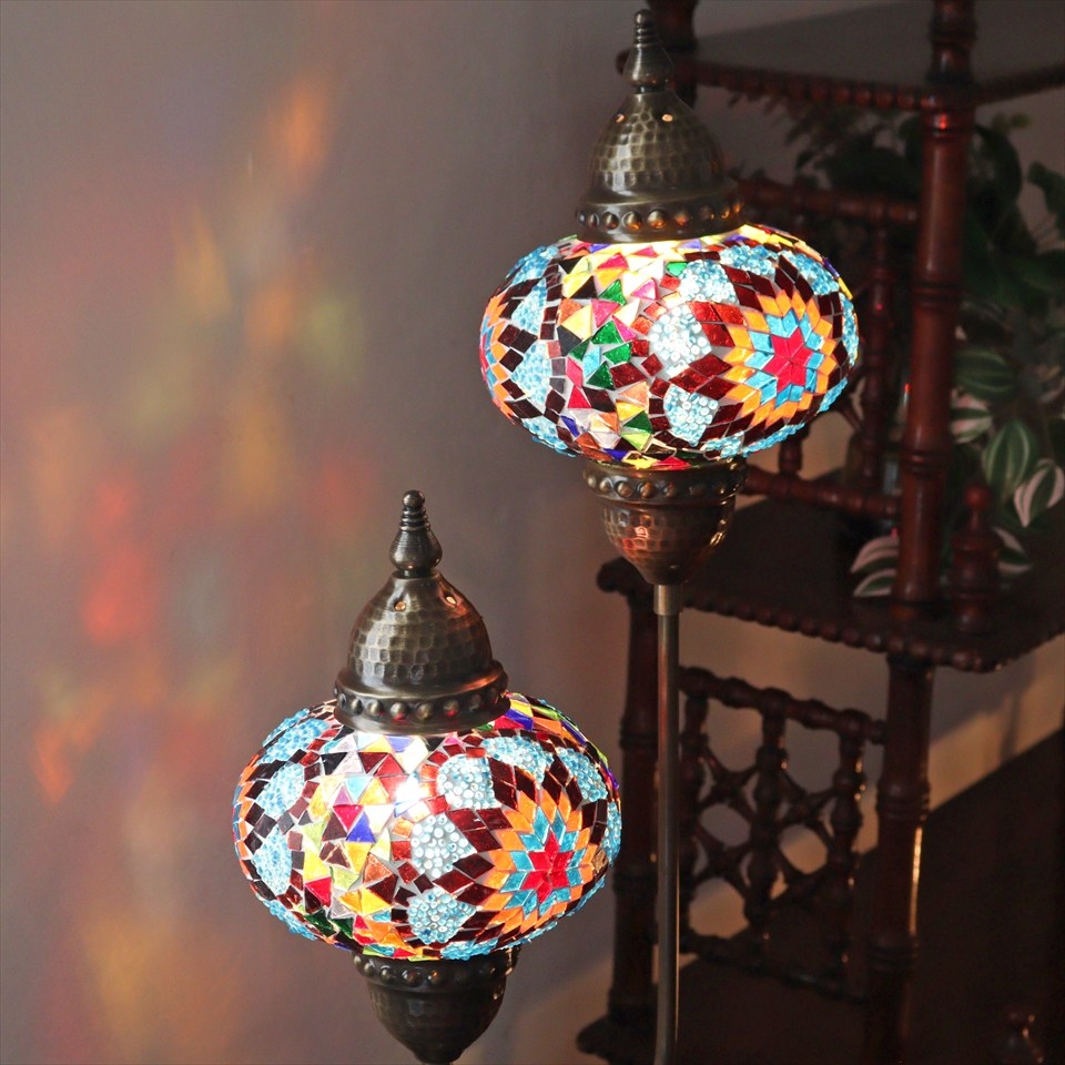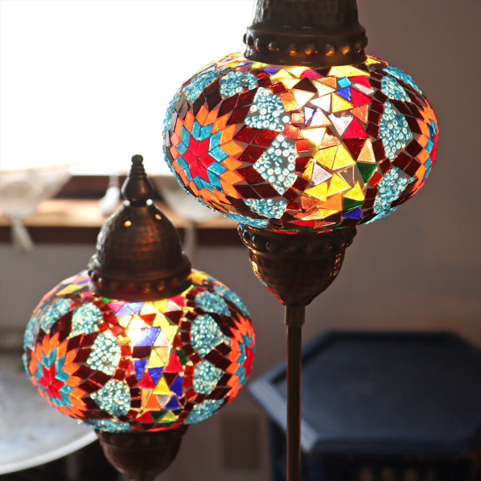 トルコランプ モザイクランプ スタンドランプ 2灯 全高67cm ミックスカラー