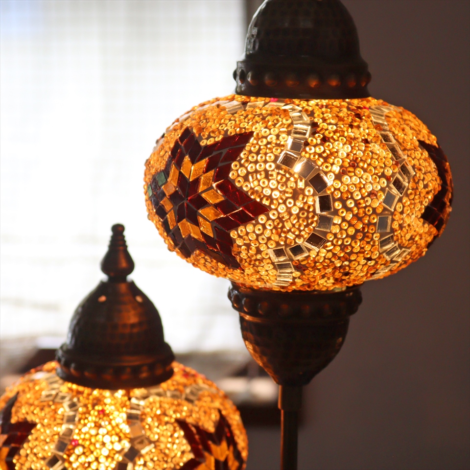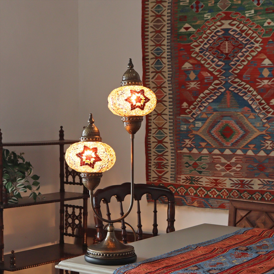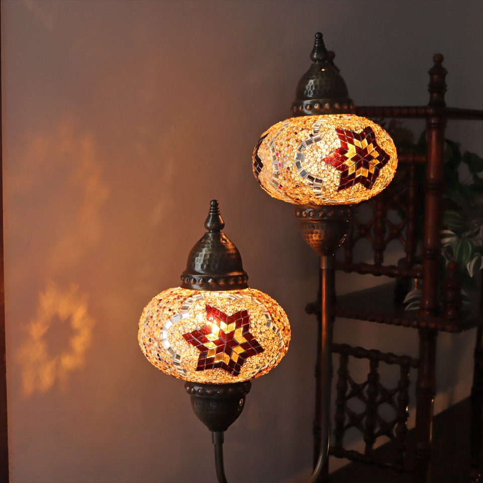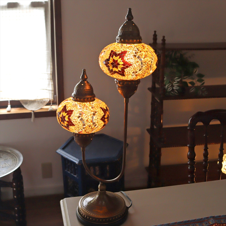 トルコランプ モザイクランプ スタンドランプ 2灯 全高67cm アンバー