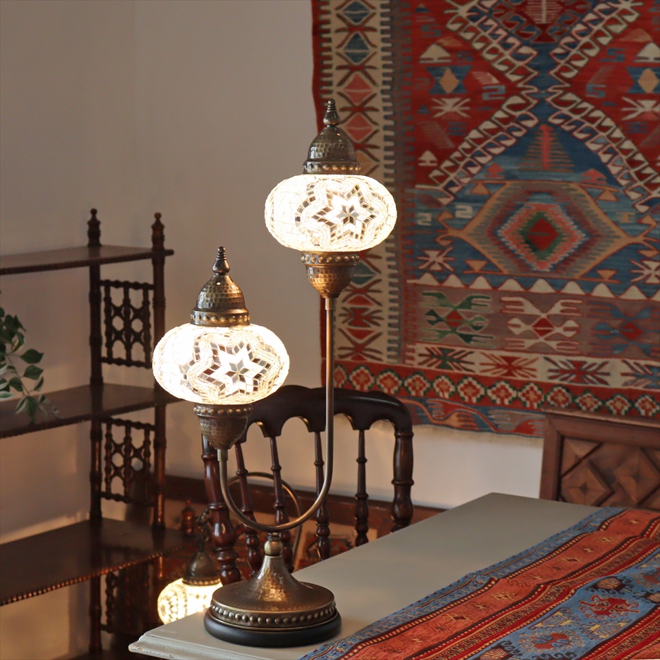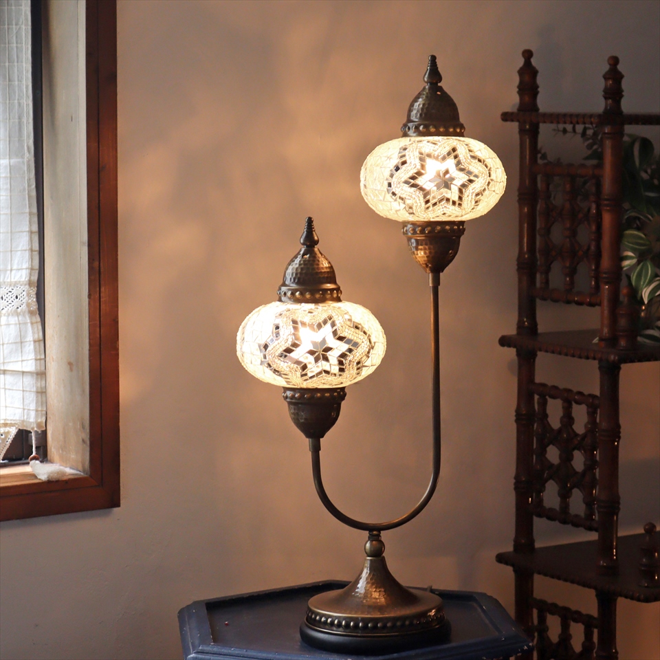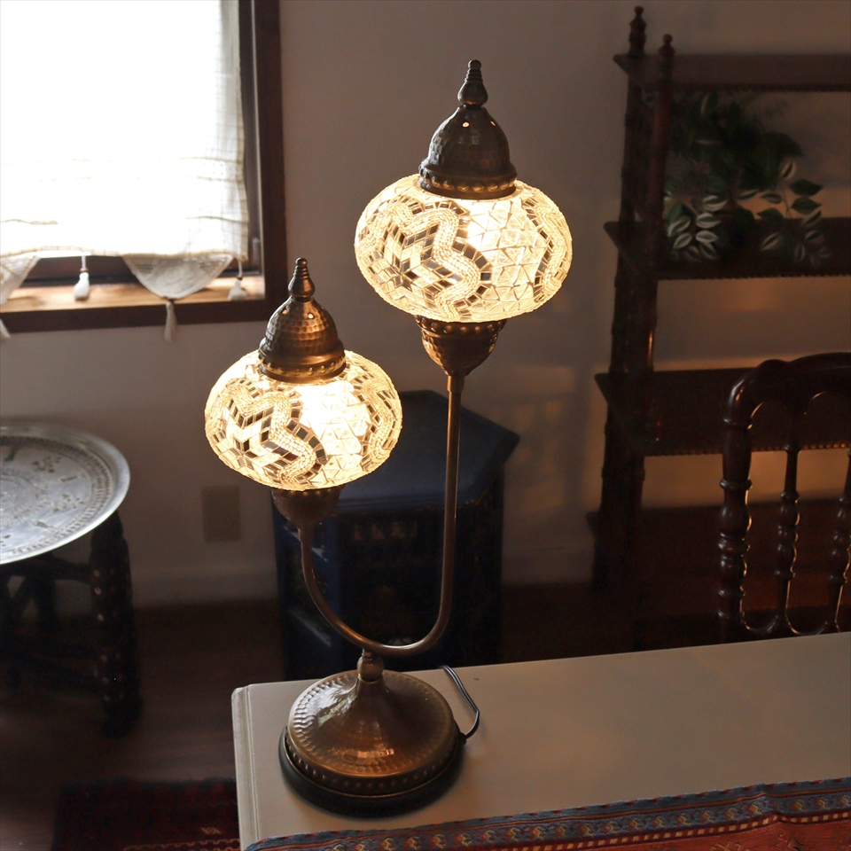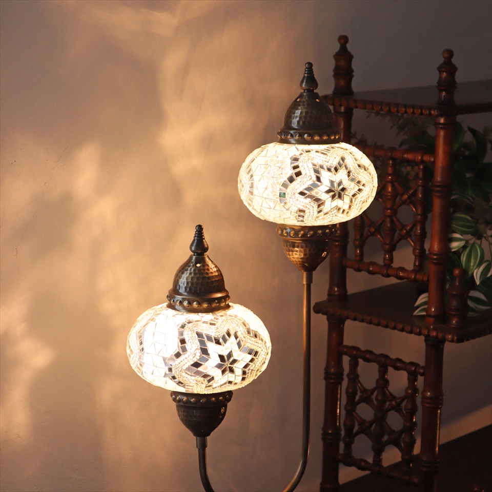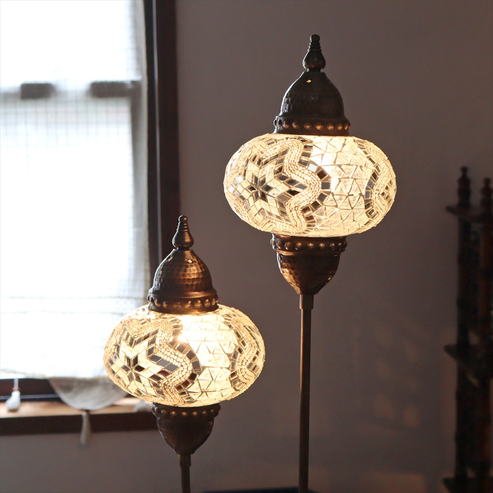 トルコランプ モザイクランプ スタンドランプ 2灯 全高67cm ホワイト