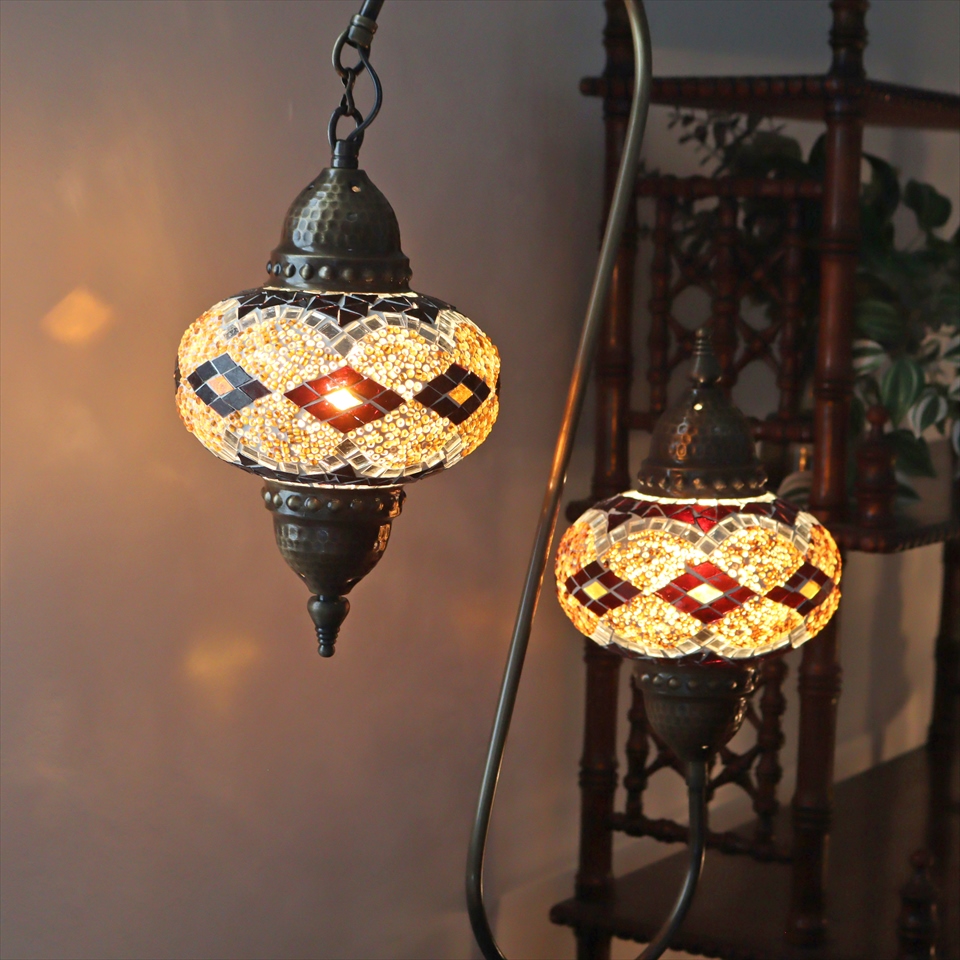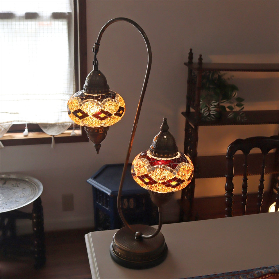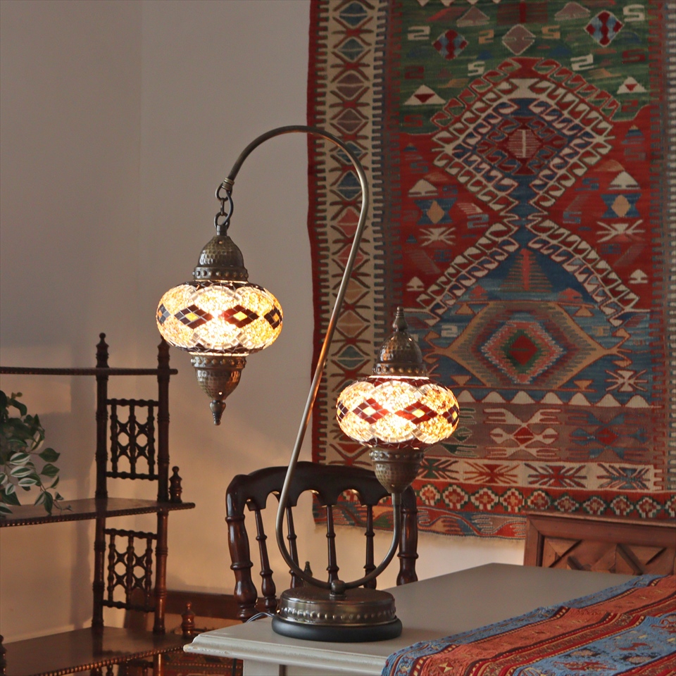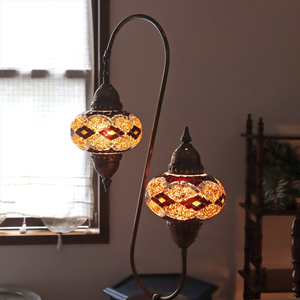 トルコランプ モザイクランプ スタンドランプ 2灯 全高67cm アンバー/アーガイル