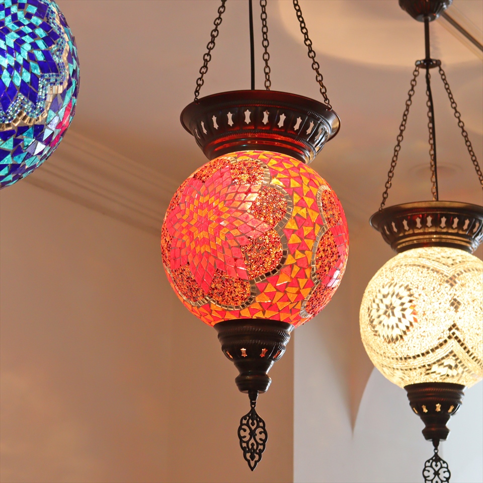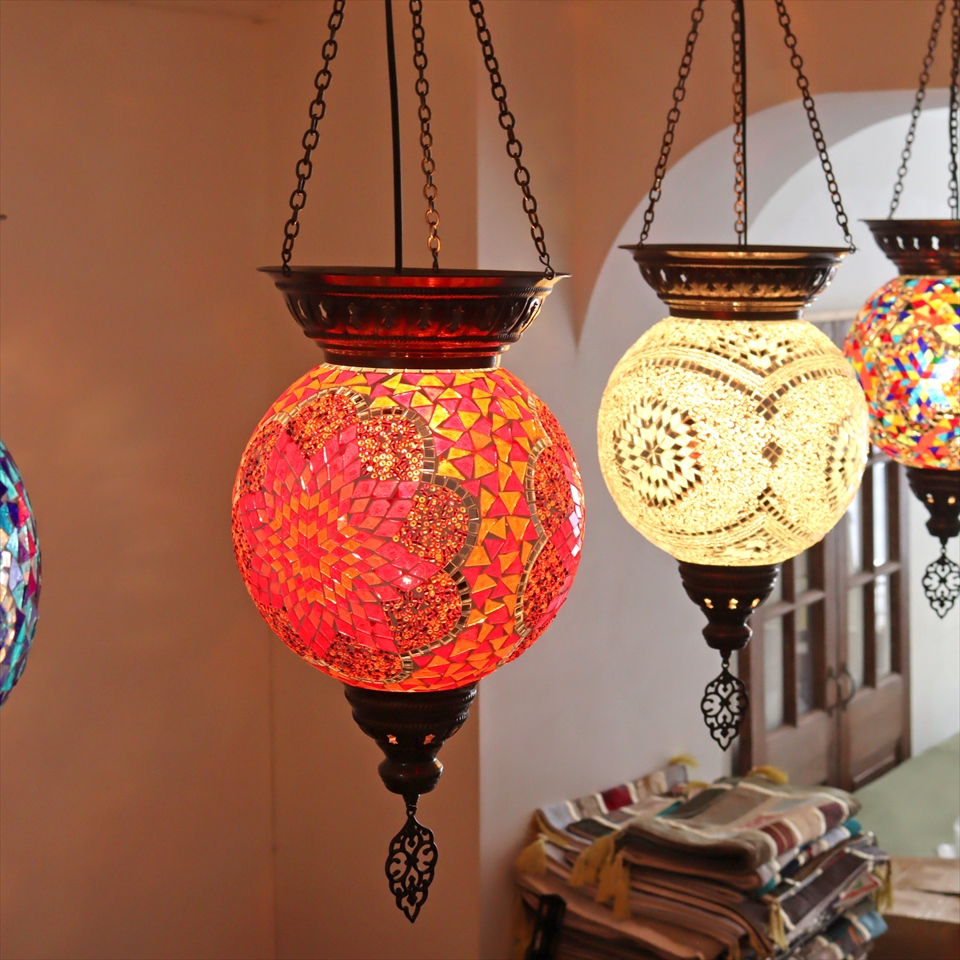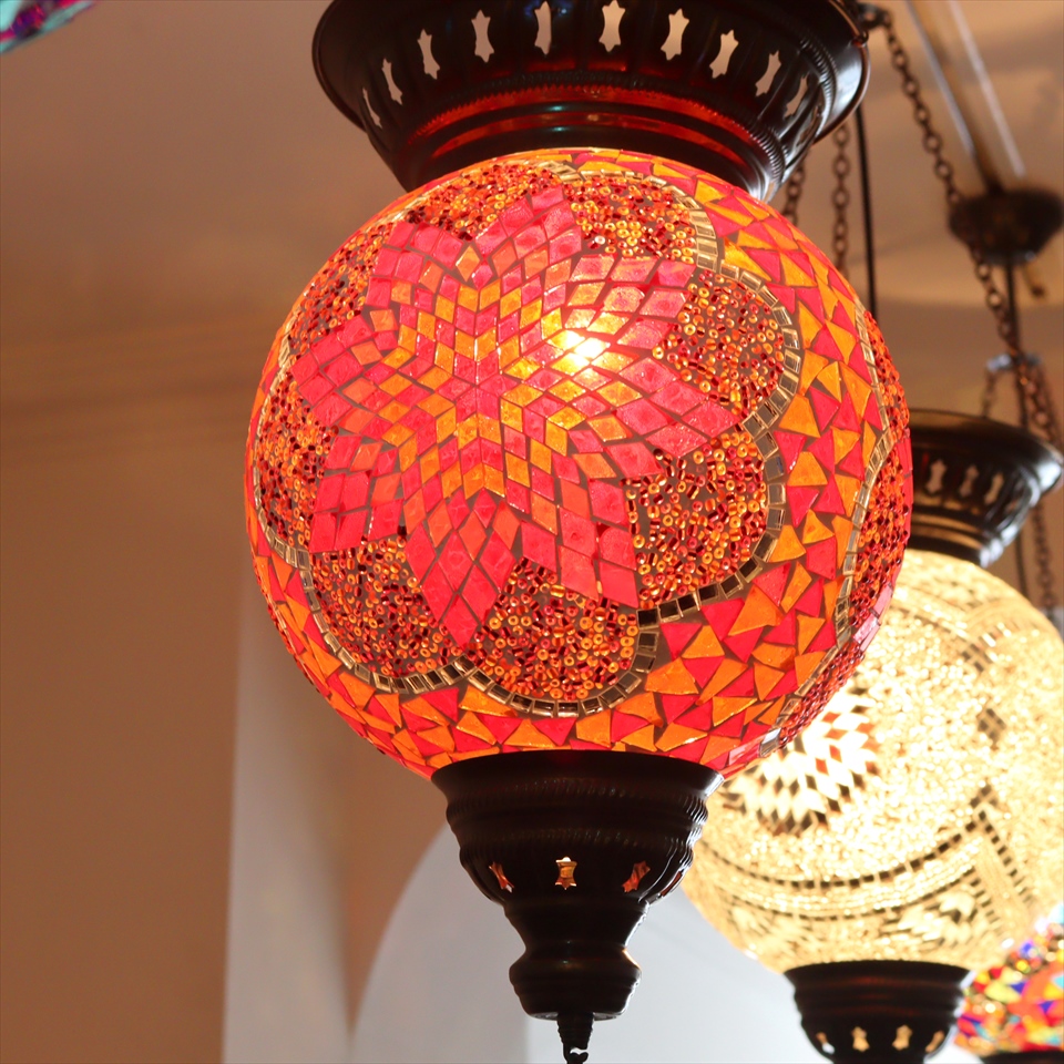 Key:トルコランプ モザイクランプ 天井照明 吹き抜け用照明 パレスランプ 大型 ガラスシェード ペンダントライト シーリングライト ランプ ライト 照明 インテリア エスニック オリエンタル 引っ掛けシーリング対応