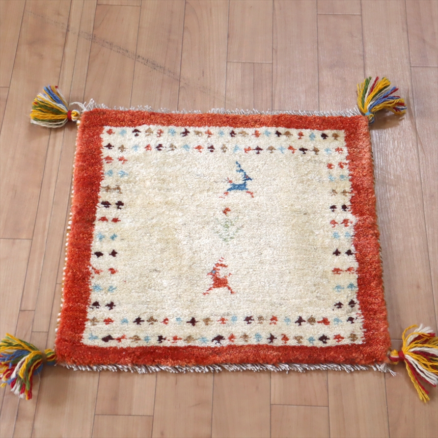 ウールの手紡ぎ毛糸を使って、イラン南部で手織りされたギャッベです。スタンダードクラスのギャッベとしては、細かく引き締まった織り目で、小さなモチーフなどが表現されています。