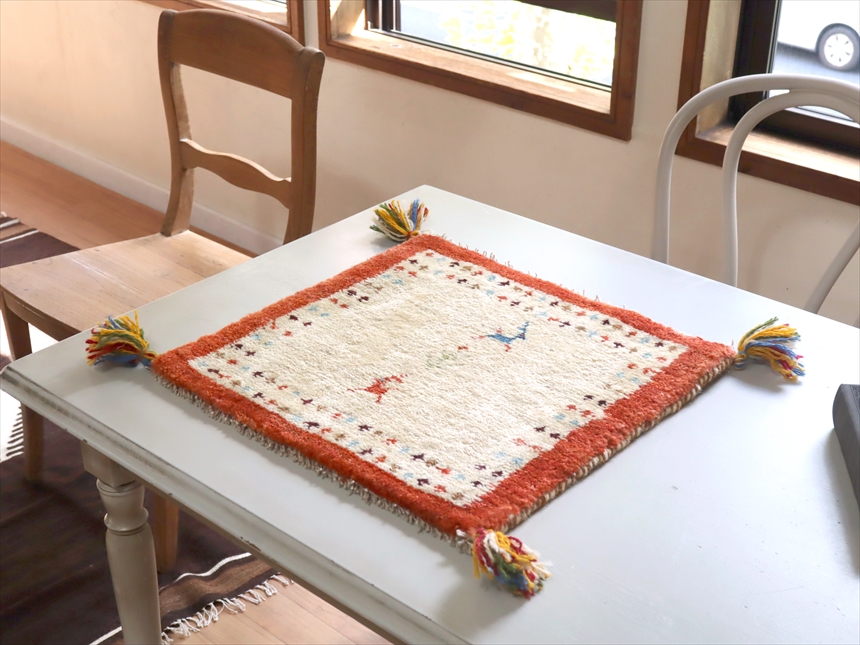 織りあがったサイズのままですので、40cm角サイズと言っても横長だったり、大きめだったり、一枚一枚サイズや織りの固さなども異なっています。