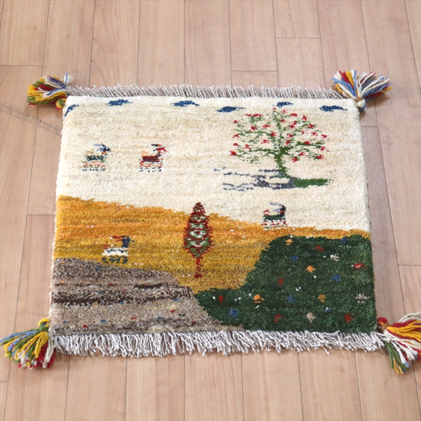ウールの手紡ぎ毛糸を使って、イラン南部で手織りされたギャッベです。スタンダードクラスのギャッベとしては、細かく引き締まった織り目で、小さなモチーフなどが表現されています。