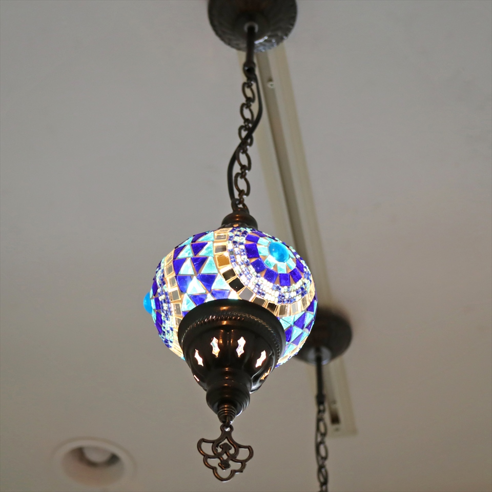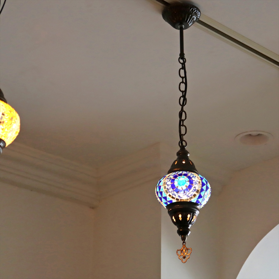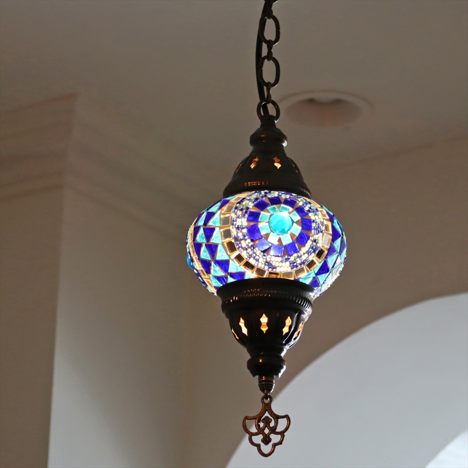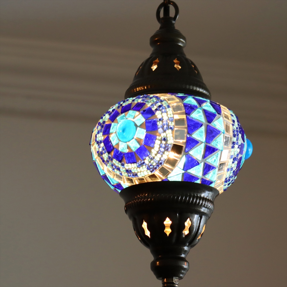 トルコランプ モザイクランプ 直径13cm 全高67cm ブルー ペンダントライト