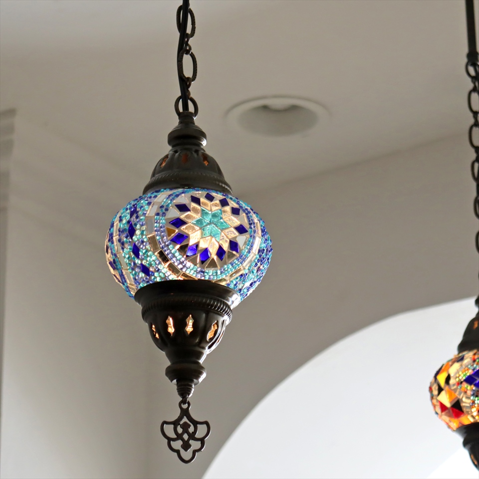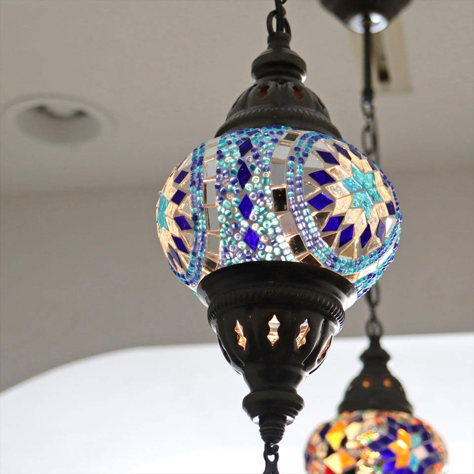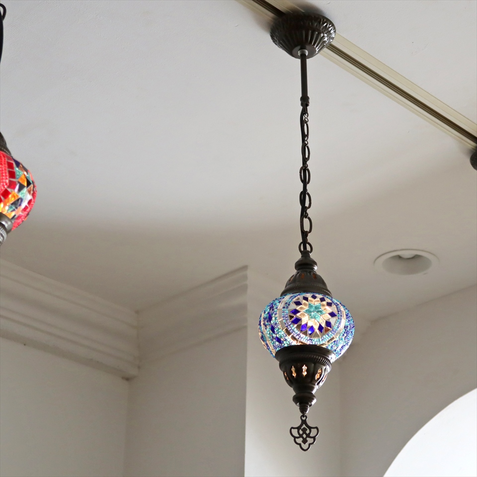 トルコランプ モザイクランプ 直径13cm 全高67cm ブルー ペンダントライト