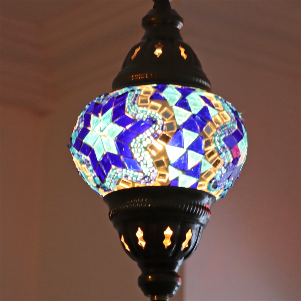トルコランプ モザイクランプ 直径13cm 全高67cm ブルー ペンダントライト