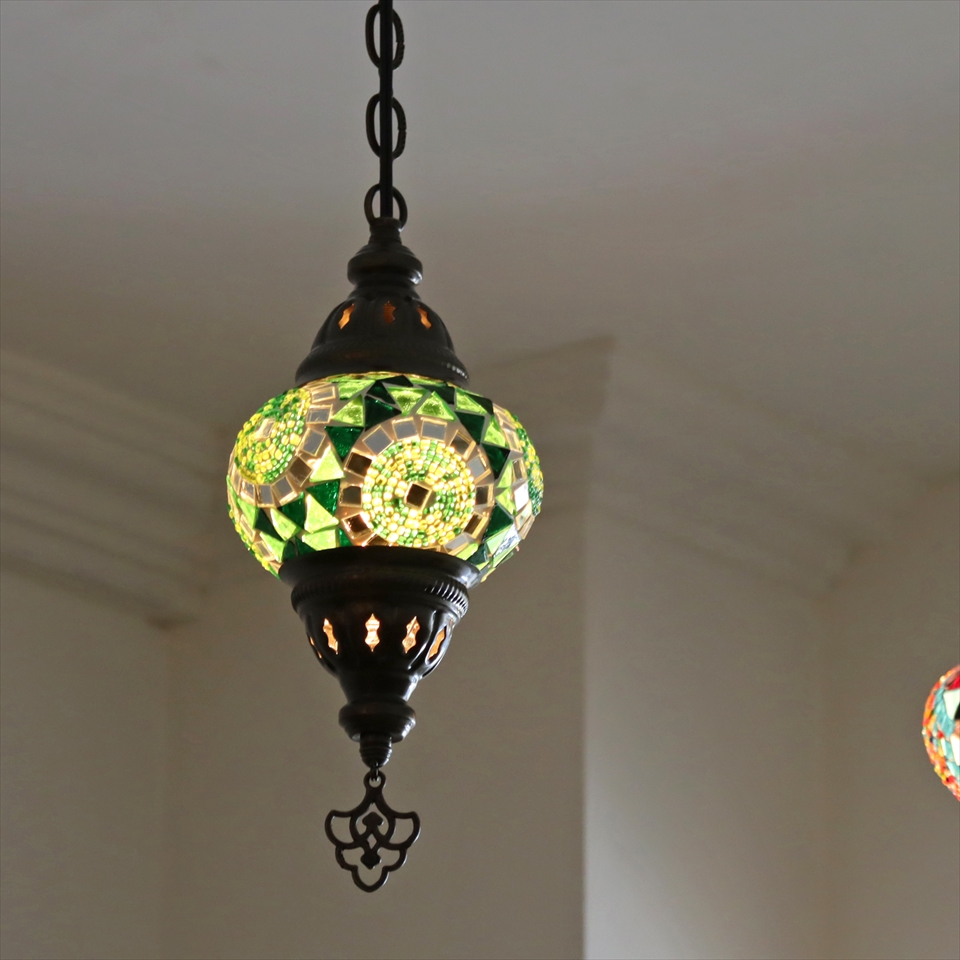 トルコランプ モザイクランプ 直径13cm 全高67cm グリーン ペンダントライト