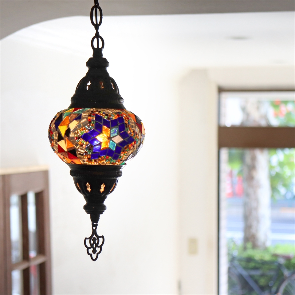 トルコランプ モザイクランプ 直径13cm 全高67cm ミックスカラー ペンダントライト