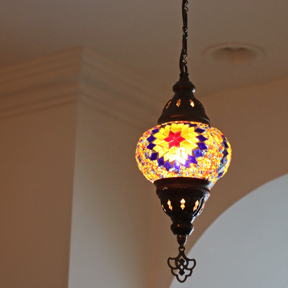 Key:トルコランプ モザイクランプ 天井照明 ガラスシェード ペンダントライト シーリングライト ランプ ライト 照明 間接照明 インテリア エスニック オリエンタル ガラスランプ 引掛けシーリング対応