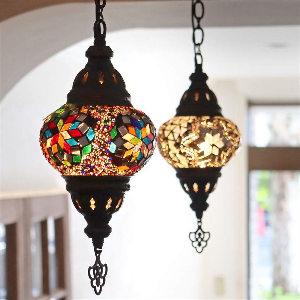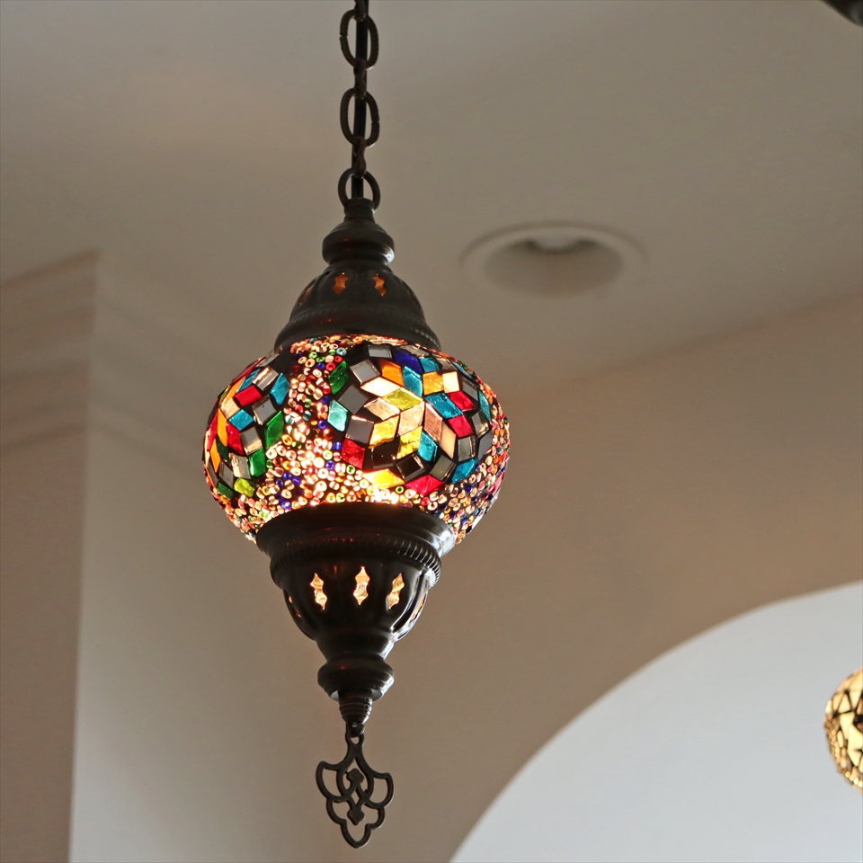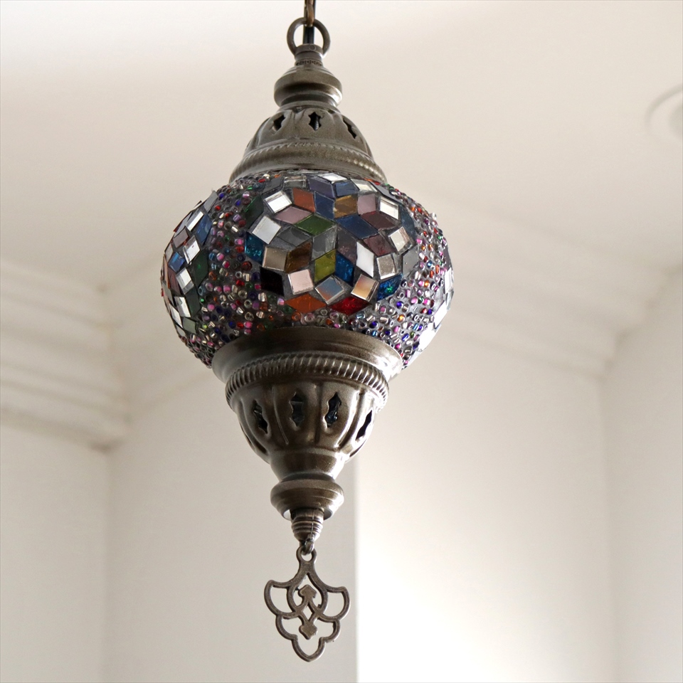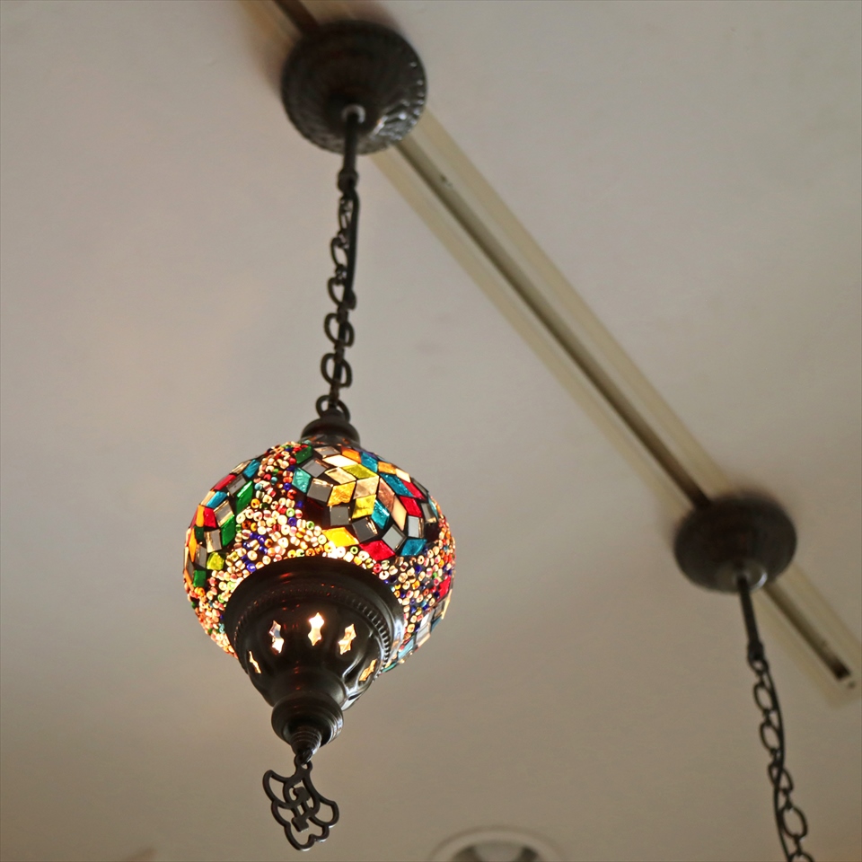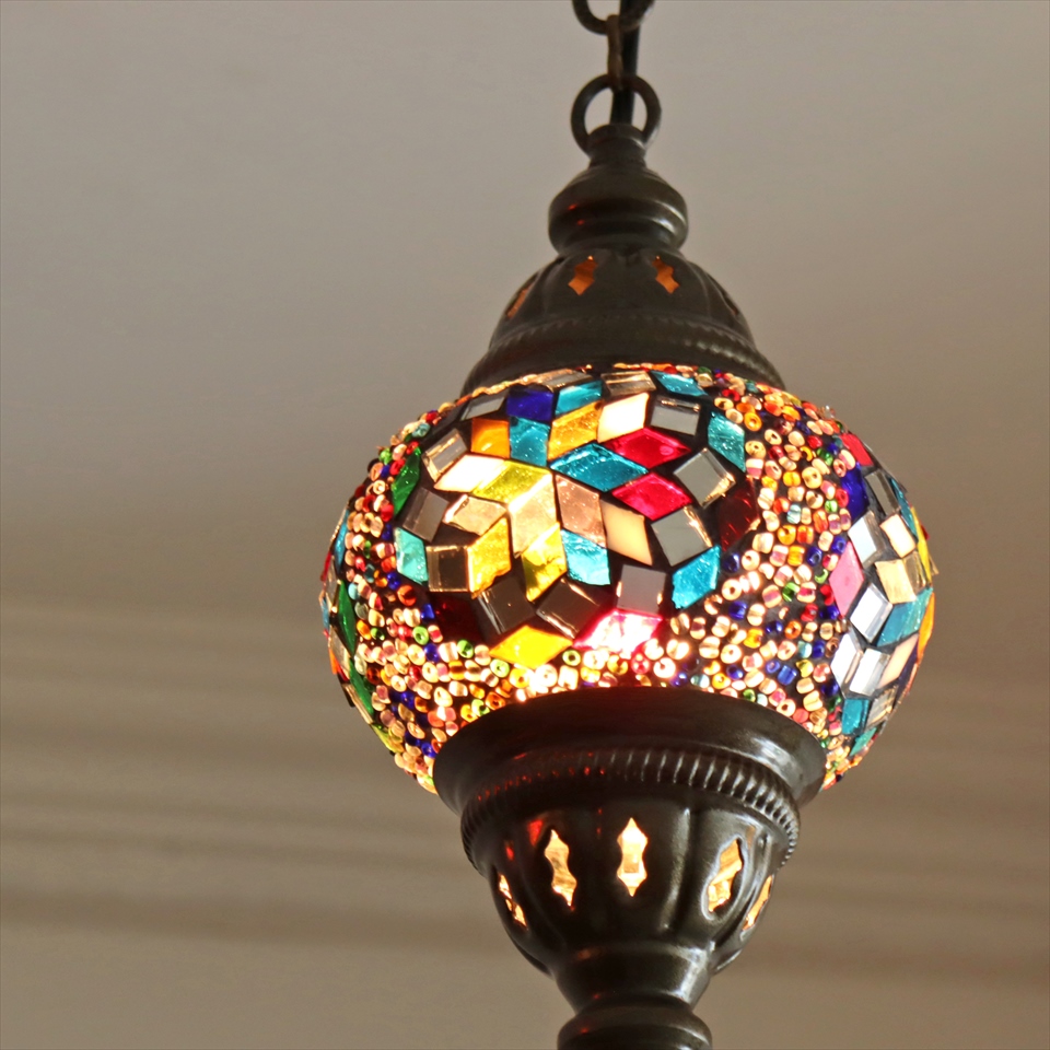 Key:トルコランプ モザイクランプ 天井照明 ガラスシェード ペンダントライト シーリングライト ランプ ライト 照明 間接照明 インテリア エスニック オリエンタル ガラスランプ 引掛けシーリング対応