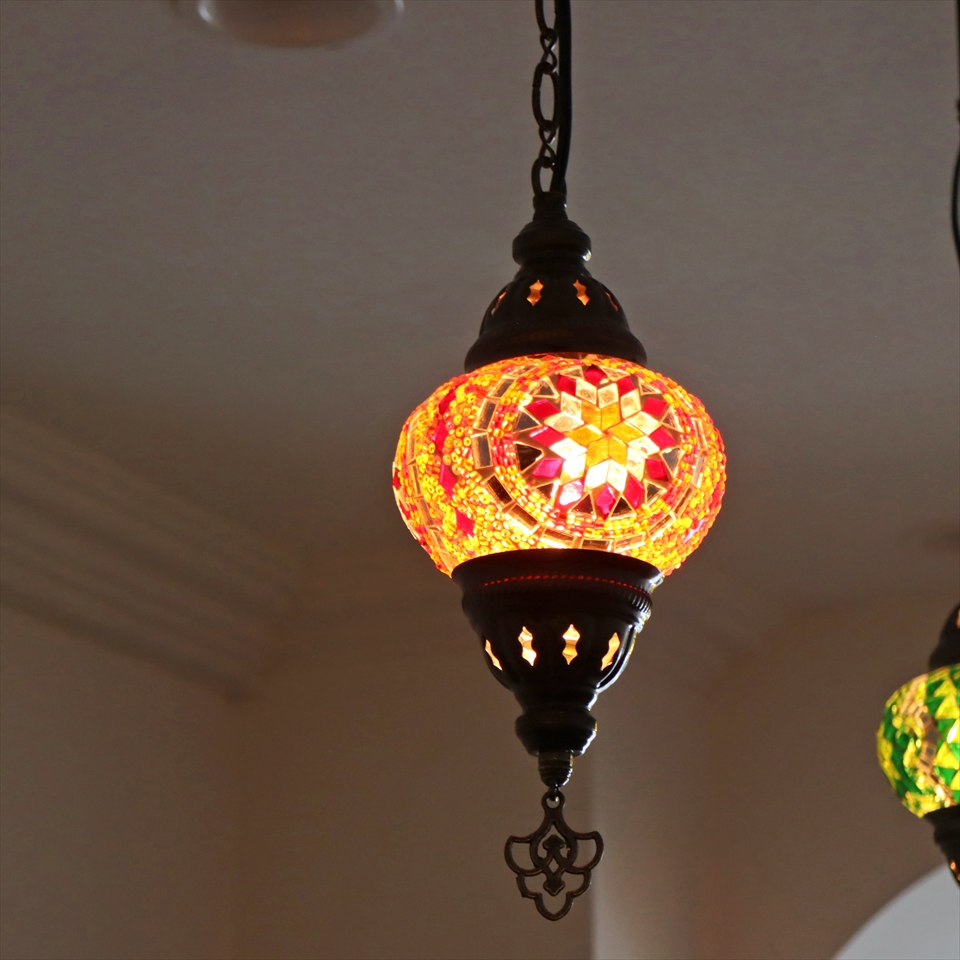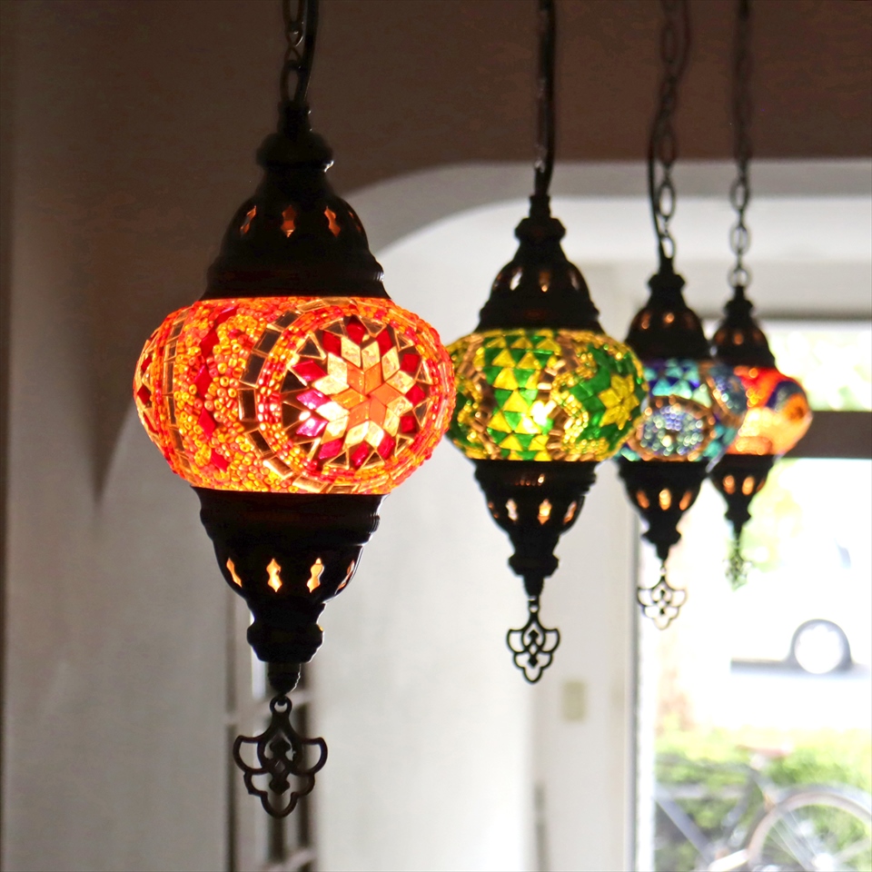 Key:トルコランプ モザイクランプ 天井照明 ガラスシェード ペンダントライト シーリングライト ランプ ライト 照明 間接照明 インテリア エスニック オリエンタル ガラスランプ 引掛けシーリング対応