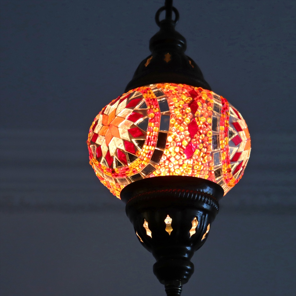 トルコランプ モザイクランプ 直径13cm 全高67cm オレンジ ペンダントライト
