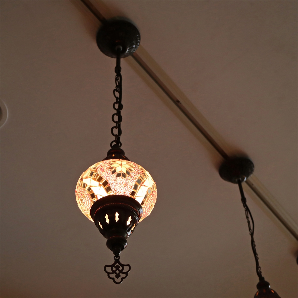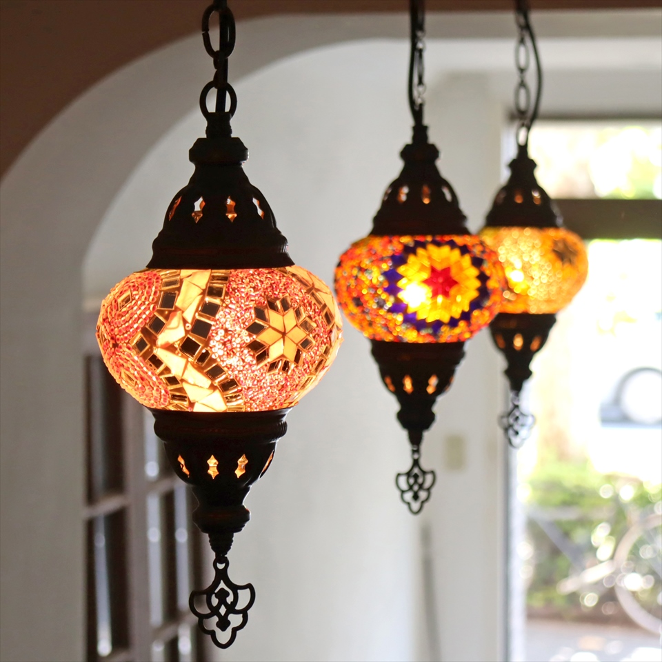 Key:トルコランプ モザイクランプ 天井照明 ガラスシェード ペンダントライト シーリングライト ランプ ライト 照明 間接照明 インテリア エスニック オリエンタル ガラスランプ 引掛けシーリング対応
