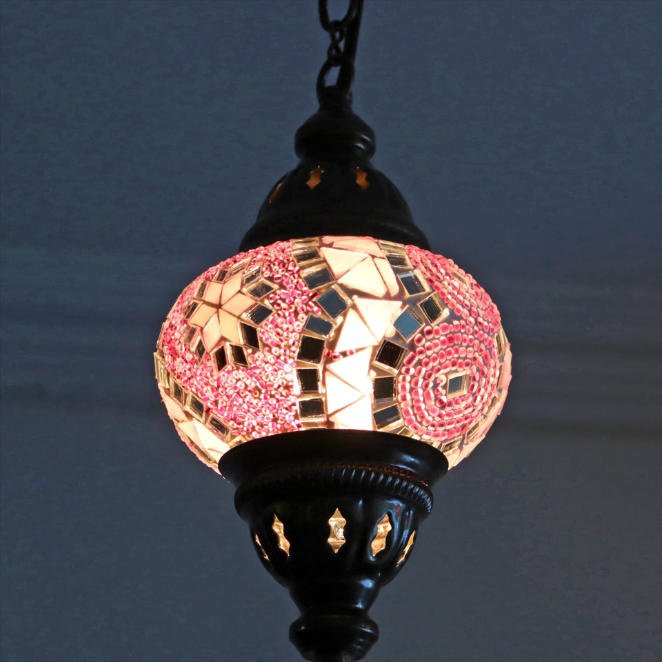 トルコランプ モザイクランプ 直径13cm 全高67cm ピンク ペンダントライト