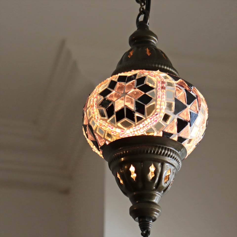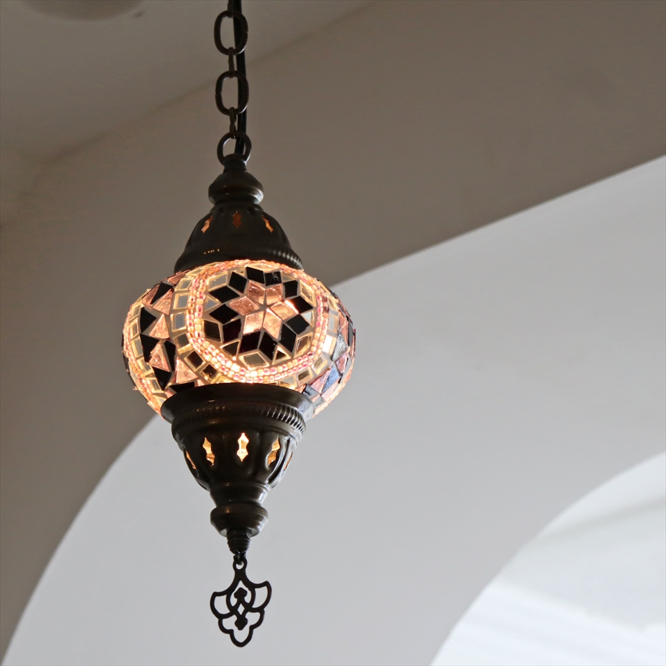Key:トルコランプ モザイクランプ 天井照明 ガラスシェード ペンダントライト シーリングライト ランプ ライト 照明 間接照明 インテリア エスニック オリエンタル ガラスランプ 引掛けシーリング対応