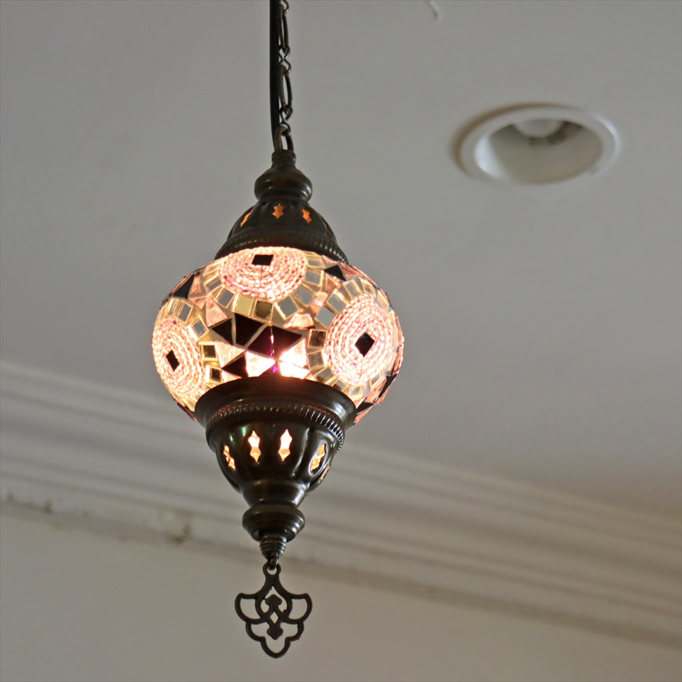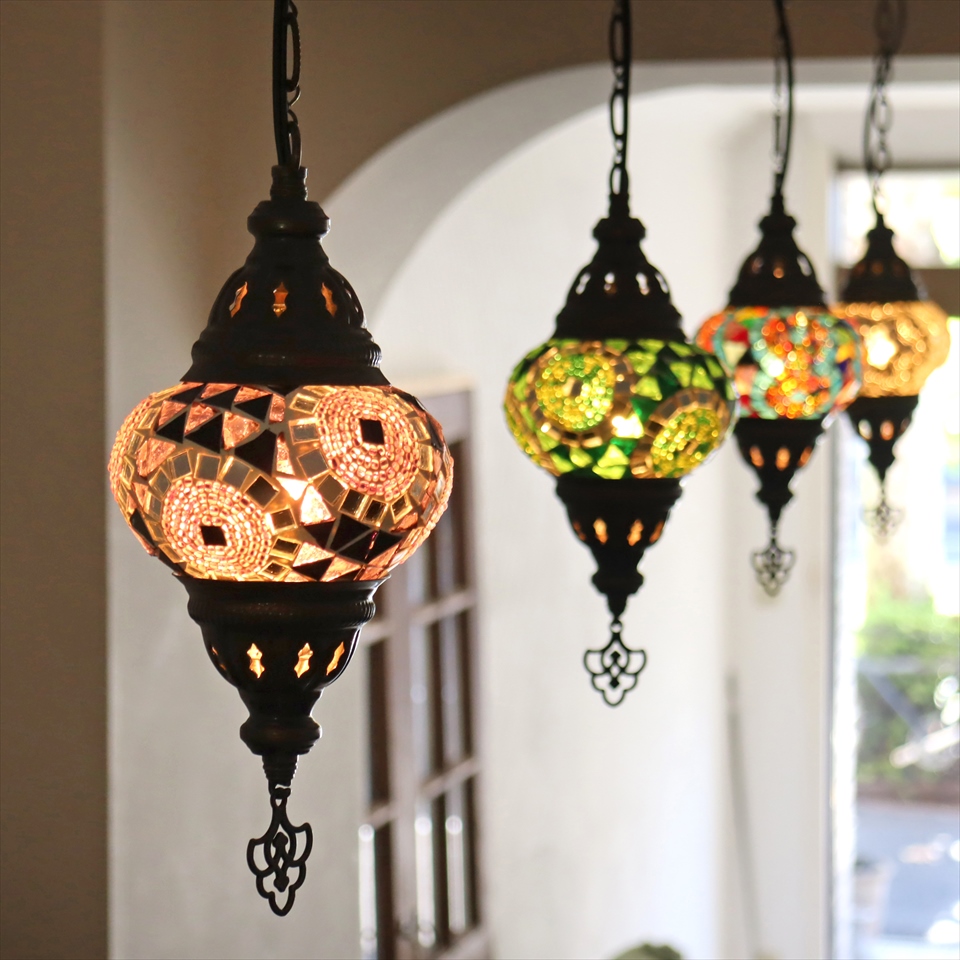 Key:トルコランプ モザイクランプ 天井照明 ガラスシェード ペンダントライト シーリングライト ランプ ライト 照明 間接照明 インテリア エスニック オリエンタル ガラスランプ 引掛けシーリング対応