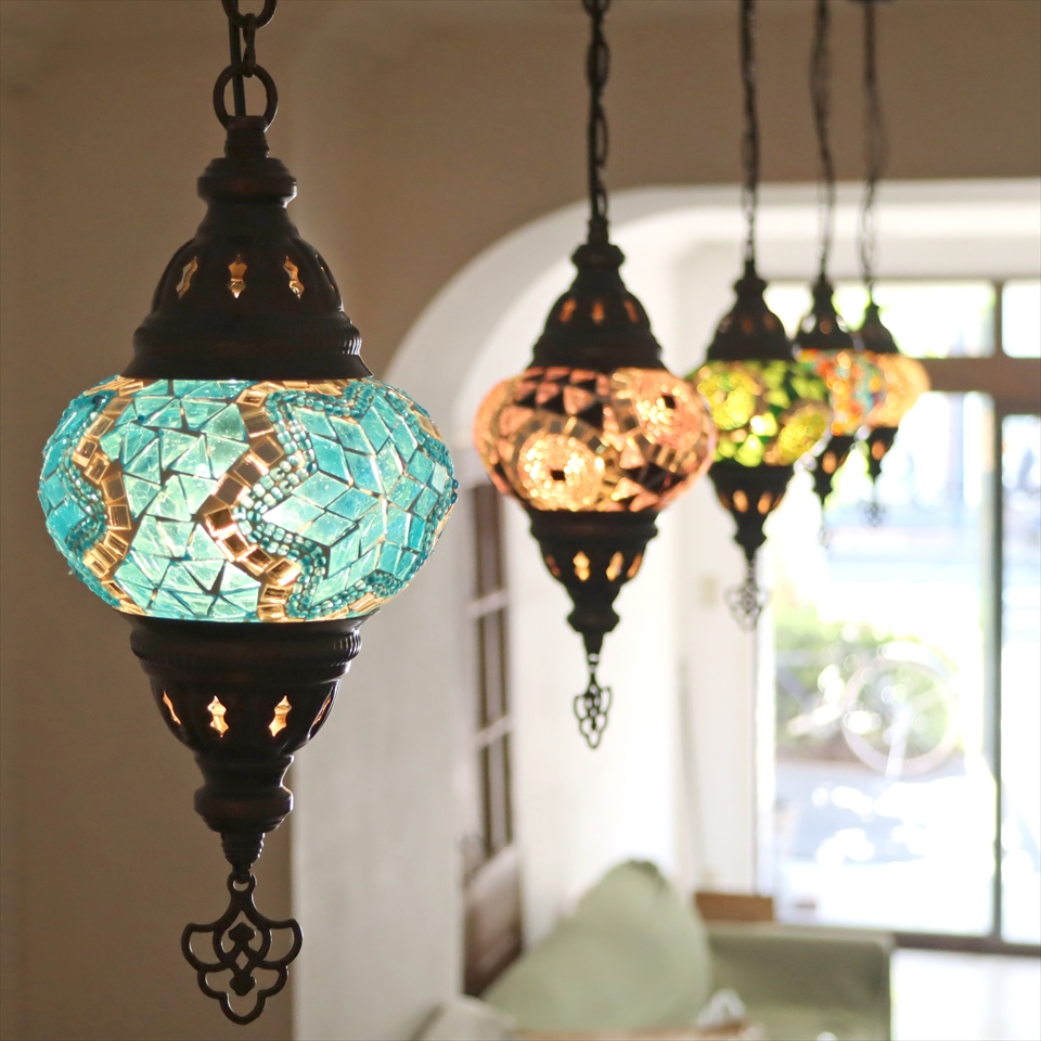 Key:トルコランプ モザイクランプ 天井照明 ガラスシェード ペンダントライト シーリングライト ランプ ライト 照明 間接照明 インテリア エスニック オリエンタル ガラスランプ 引掛けシーリング対応
